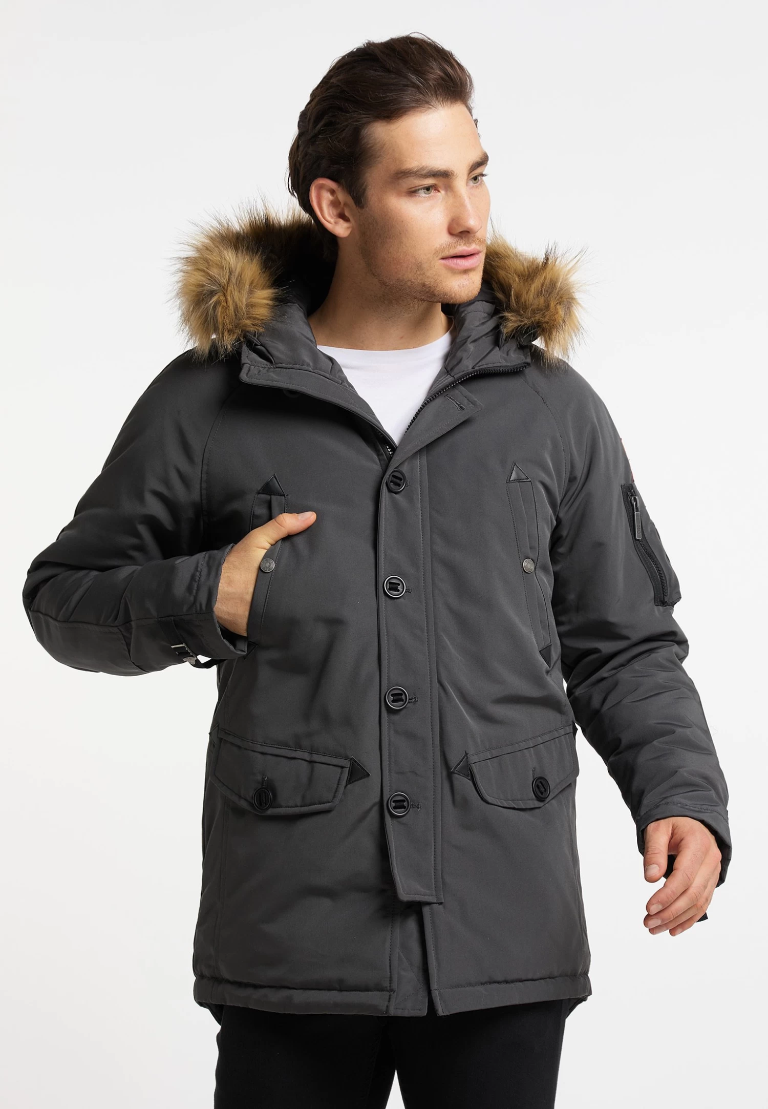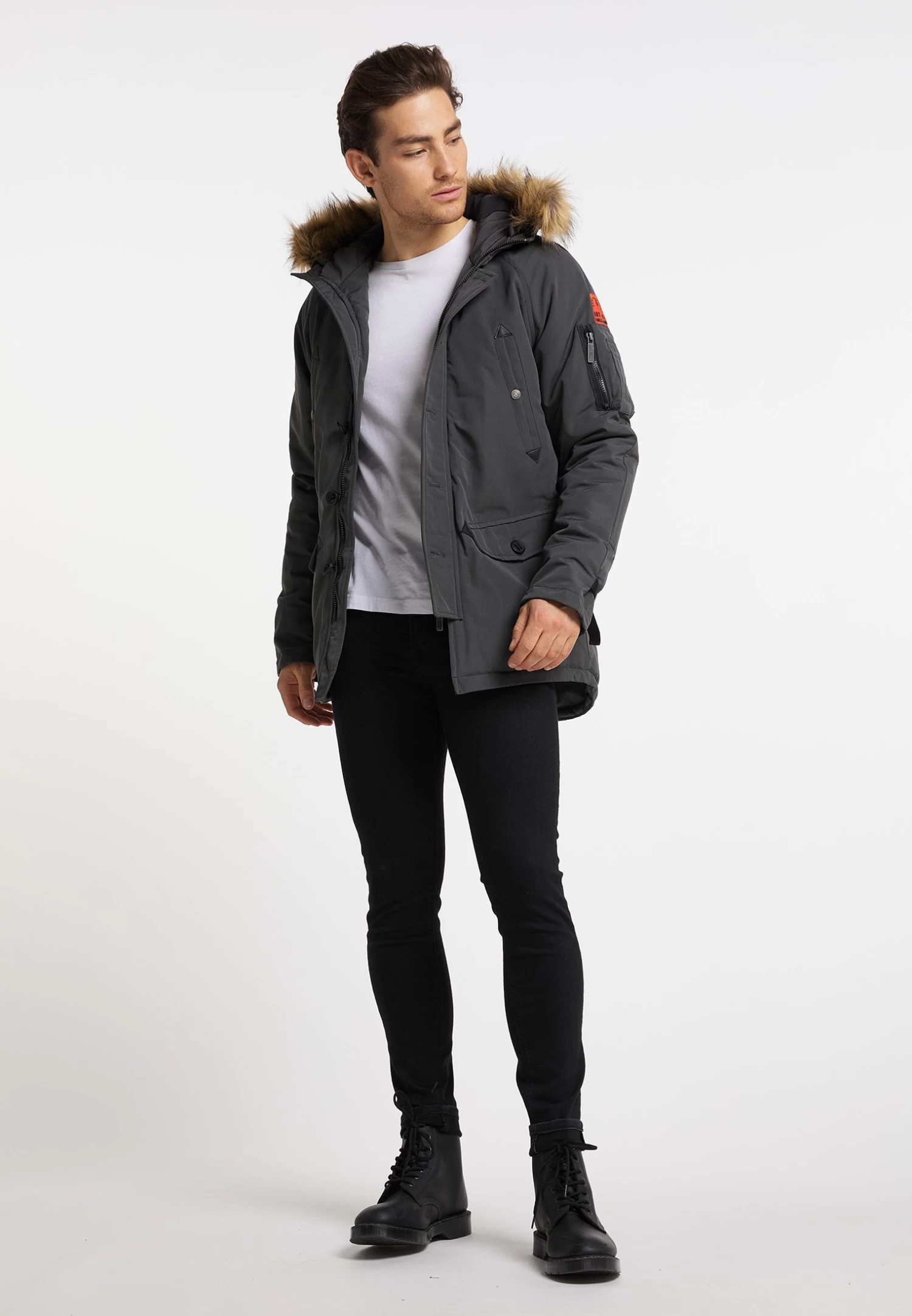 | Detalle capucha | Con cordón, forrada, Capucha desmontable de pelo sintético |