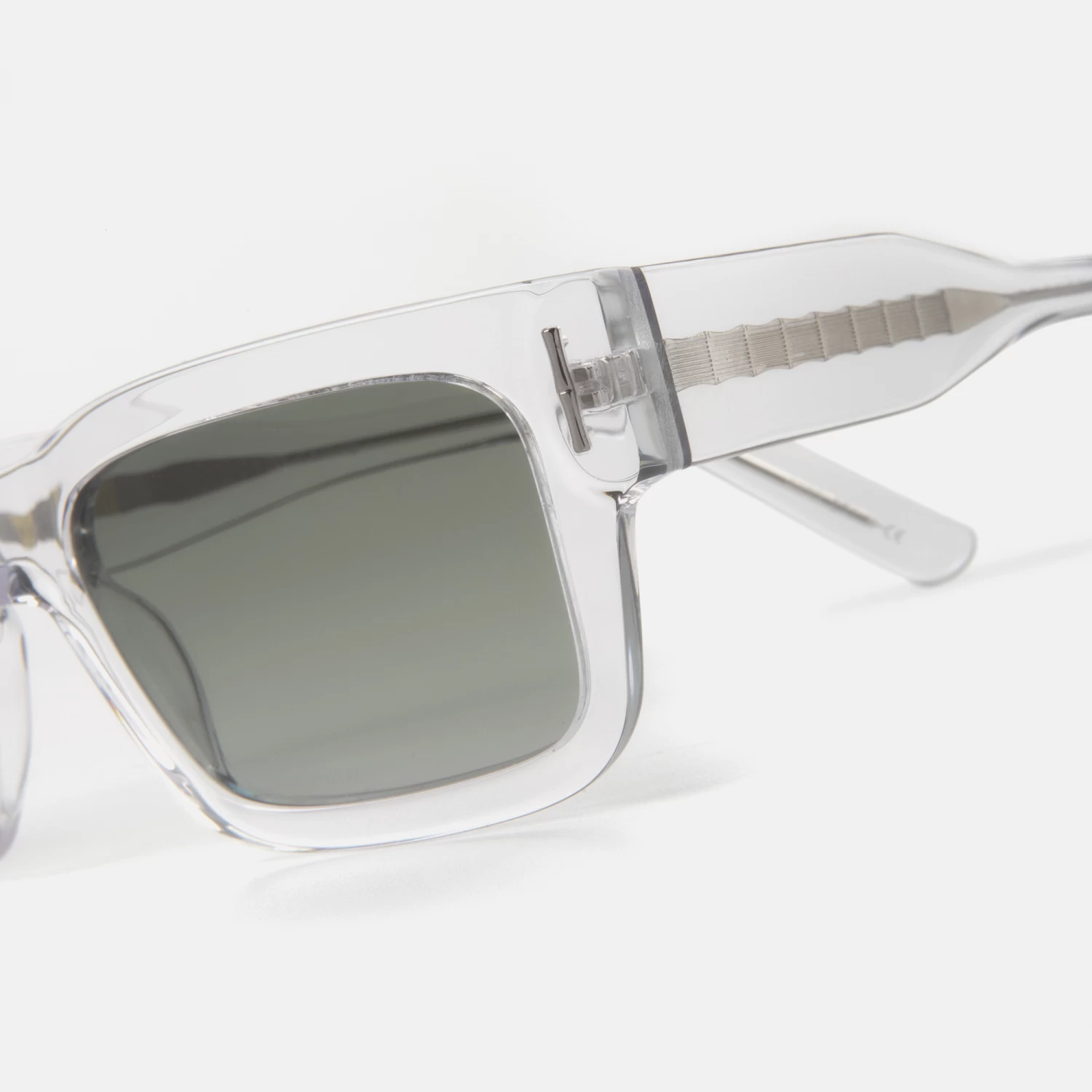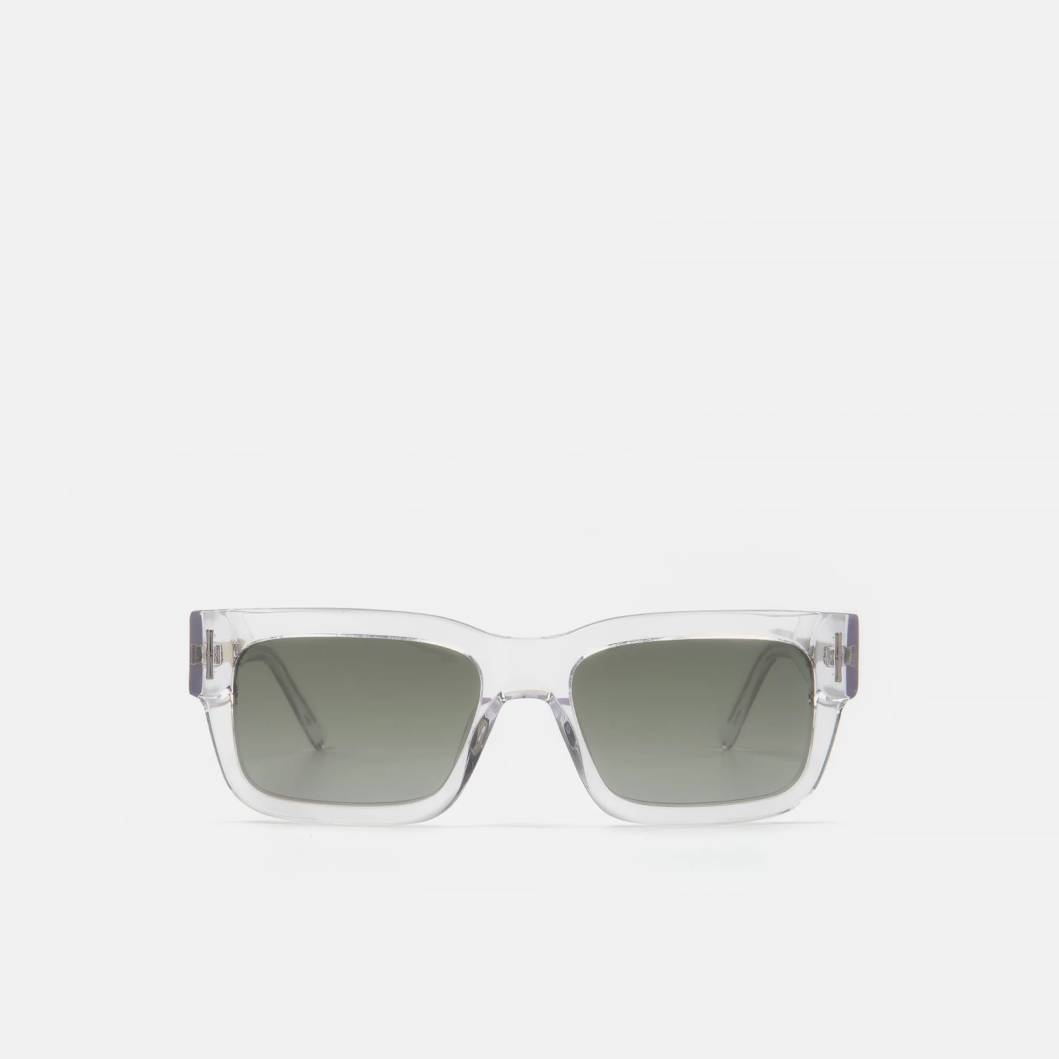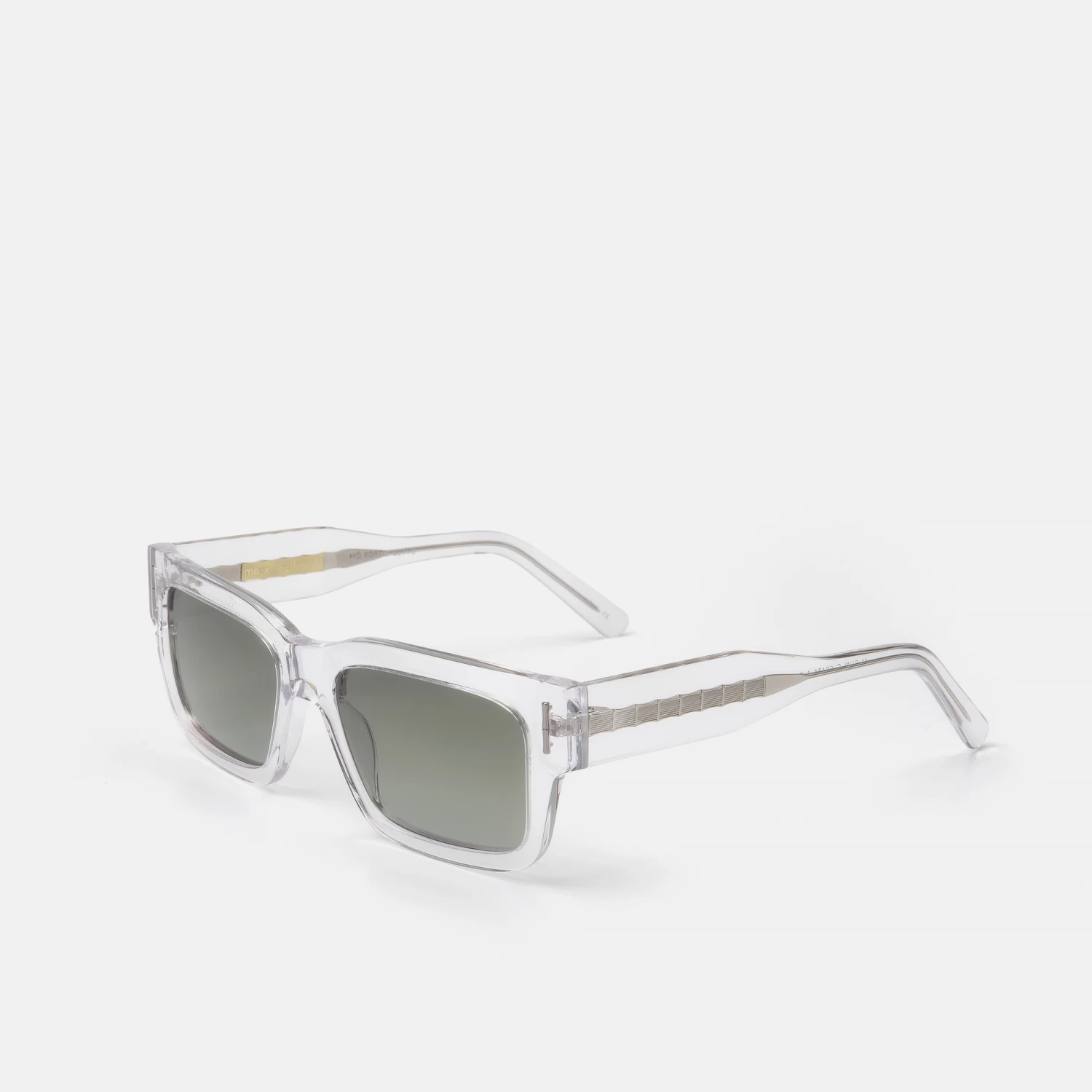 Gafas de sol unisex, con silueta rectangular, de acetato transparente con perfil ancho, creadas en colaboración con el diseñador Juan Avellaneda. En las varillas y frente, destacan sus apliques de metal plateado emulando el bambú. Sus lentes verde degradado polarizadas proporcionan una visión más nítida y un mejor contraste. Este modelo viene acompañado de un pack compuesto por una cajita estampada conuno de los motivos más icónicos del diseñador , un estuche redondeado en tono amarillo y una gamuza a juego.