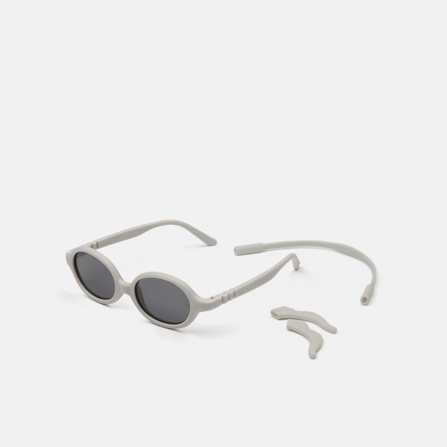 Gafas de sol kids unisex, de silueta redondeada en color gris pastel, hechas en una silicona suave que ofrece un mayor confort. Incluyen unas piezas antideslizantes de silicona, así como un cordón para llevarlas colgadas. Sus lentes polarizadas propporcionan una visión más nítida y un mejor contraste.