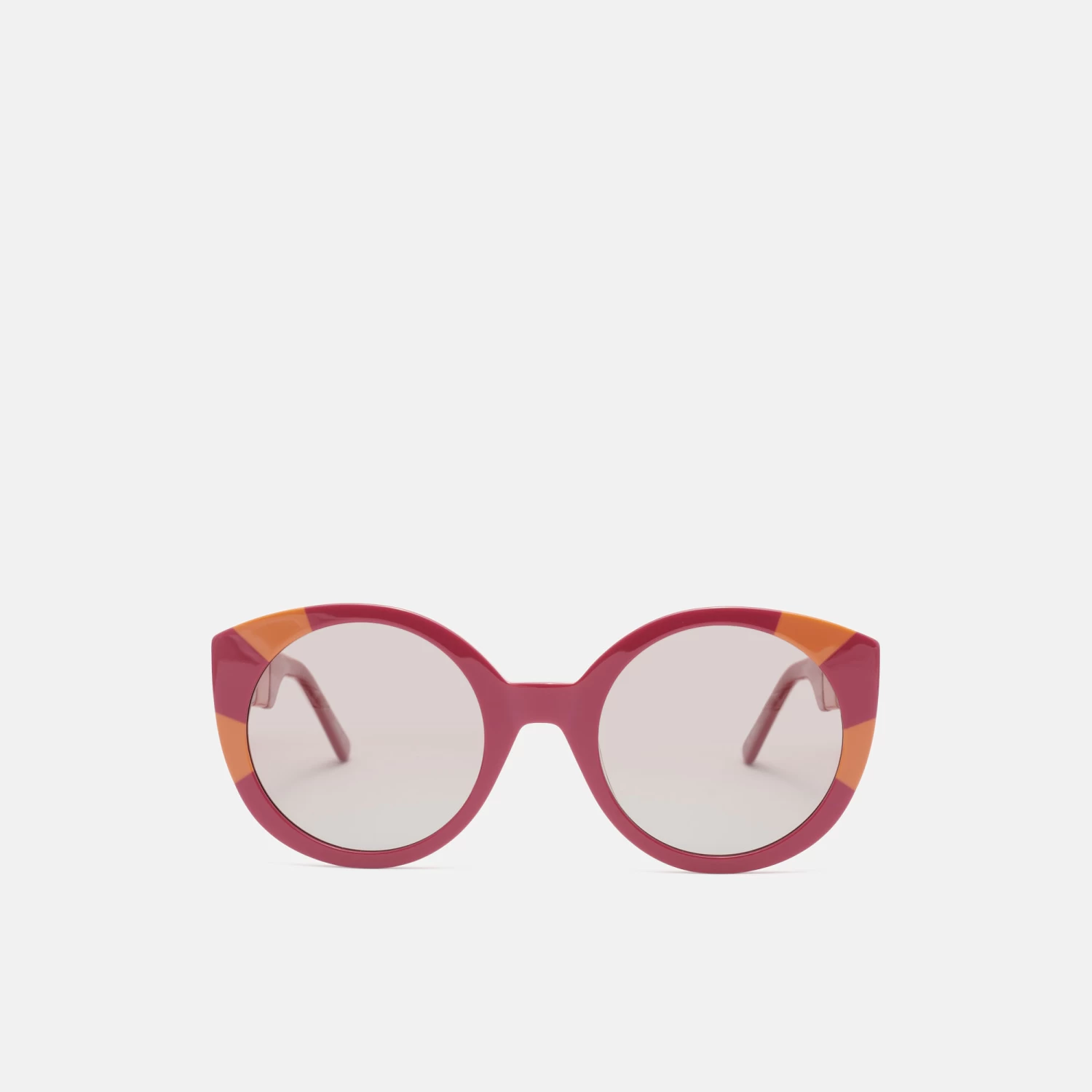 El modelo Mó Bedin de la colección BLOCKS inspirada en la geométrica colorida con origen en el grupo artístico Memphis. Hecha en acetato con silueta cat-eye. Frontal en bicolor negro y blanco, varilla en bloques de color en rosa y naranja. Sus lentes rosas degradadas de alta calidad, son polarizadas para una mayor protección y confort.