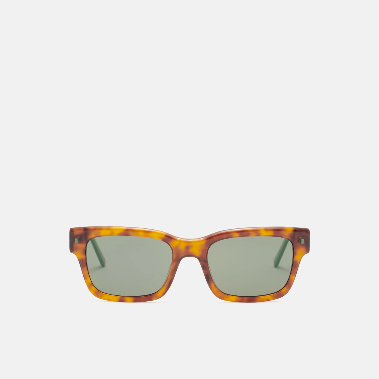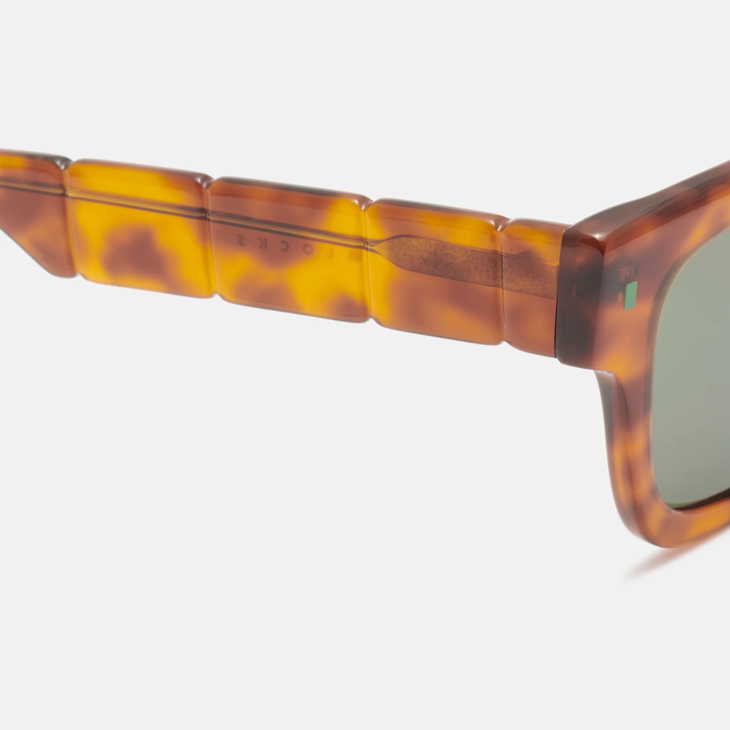 El modelo Mó Bengtsson de la colección BLOCKS inspirada en la geométrica colorida con origen en el grupo artístico Memphis. Hecha en acetato, diseño en forma rectangular con frontal en carey y varilla en bicolor carey y verde. Sus lentes verdes de alta calidad, son polarizadas para una mayor protección y confort.