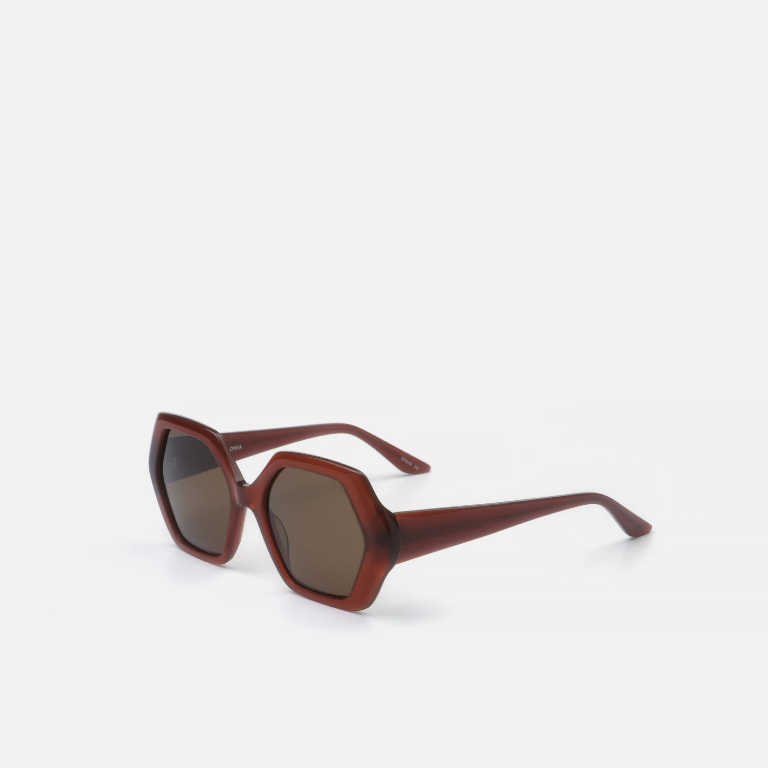 Gafas de sol para mujer, con forma geométrica, de acetato marrón.