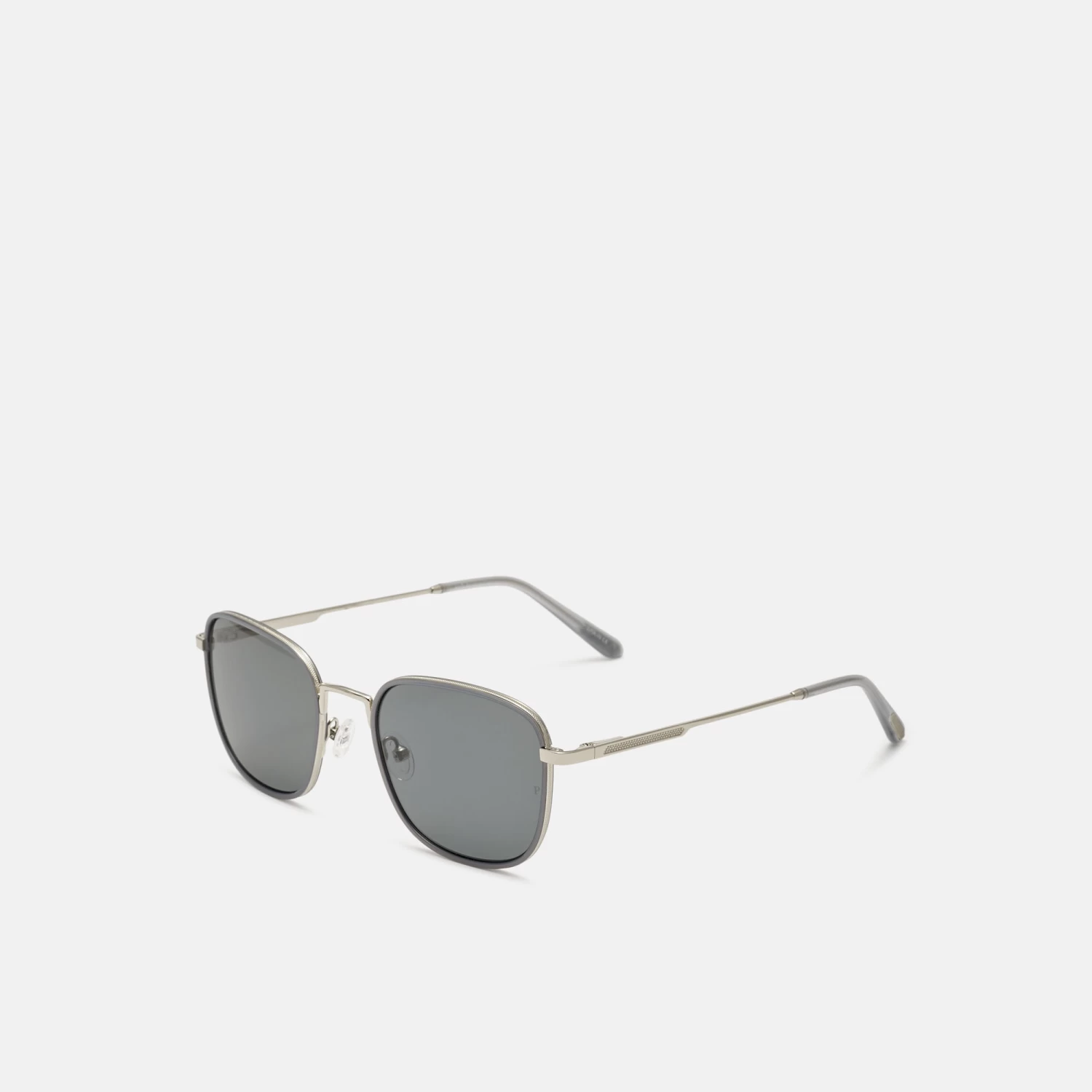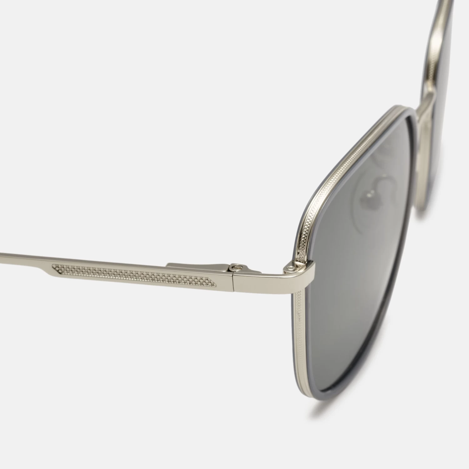 Gafas de sol para hombre, con forma cuadrada, de metal con aros de acetato en color azul. La varilla cuenta con relieve texturizado, que aporta un toque más sofisticado. Sus lentes grises de alta calidad, son polarizadas para una mayor protección y confort.