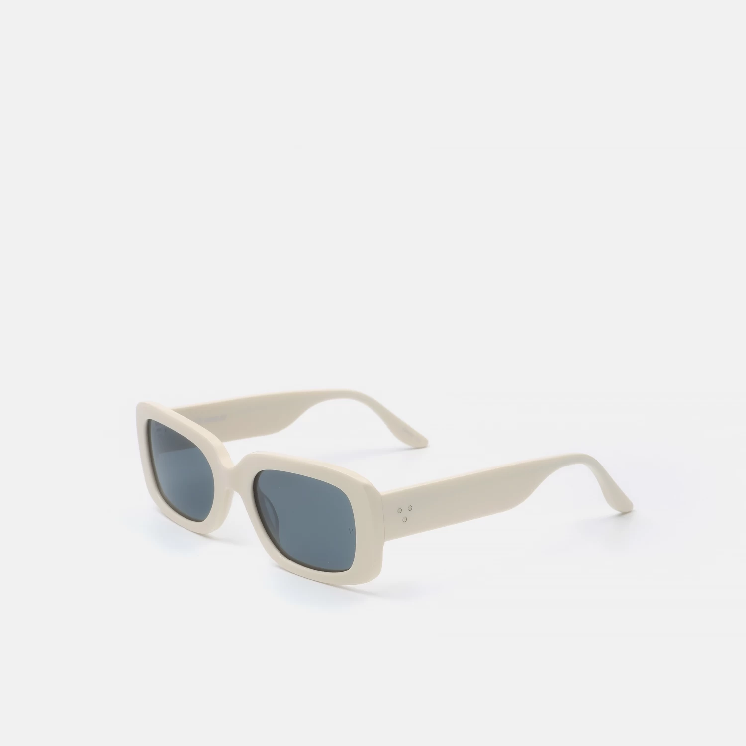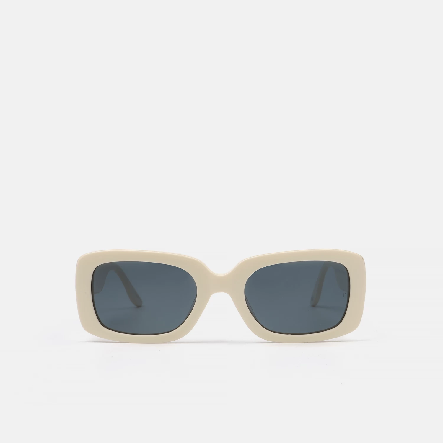 Gafas de sol para mujer, de silueta rectangular, en acetato grueso de color beige . Cuentan con decoraciones metálicas doradas en las varillas.