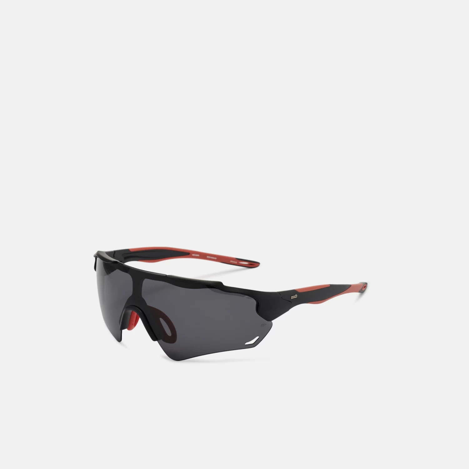Gafas de sol deportivas con diseño ergonómico, de material ECO G850 negro que ofrece una gran resistencia y ligereza. Además, sus detalles engomados color rojizo aportan una mayor comodidad y sujeción. Sus lentes grises de alta calidad son polarizadas y anti-vaho, para una mejor protección , asegurando una experiencia cómoda y segura para tus ojos. en el deporte del día a día.