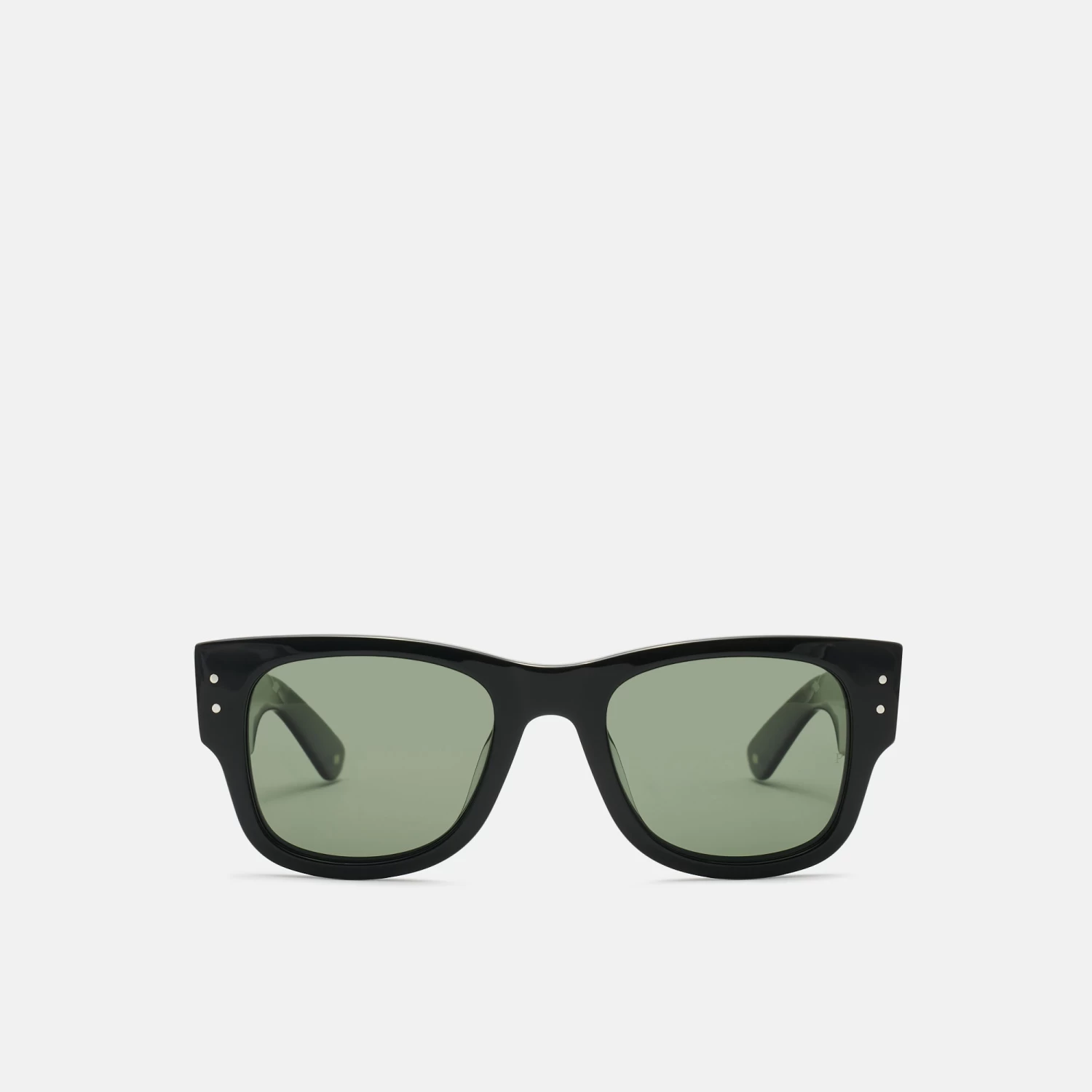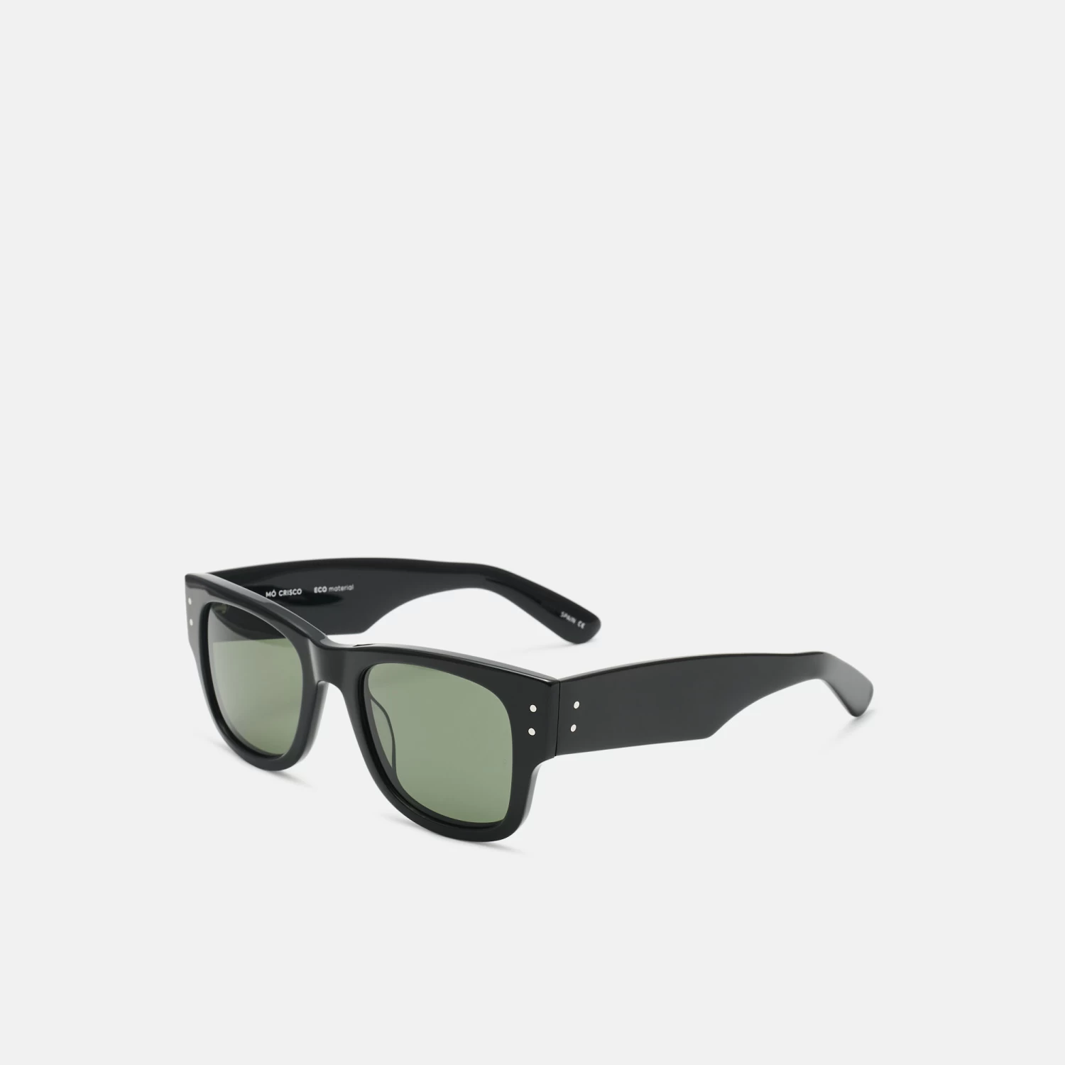 Gafas de sol unisex, con forma cuadrada, de acetato negro, con varillas anchas. Sus lentes verdes son polarizadas de alta calidad , para una mejor protección y confort.