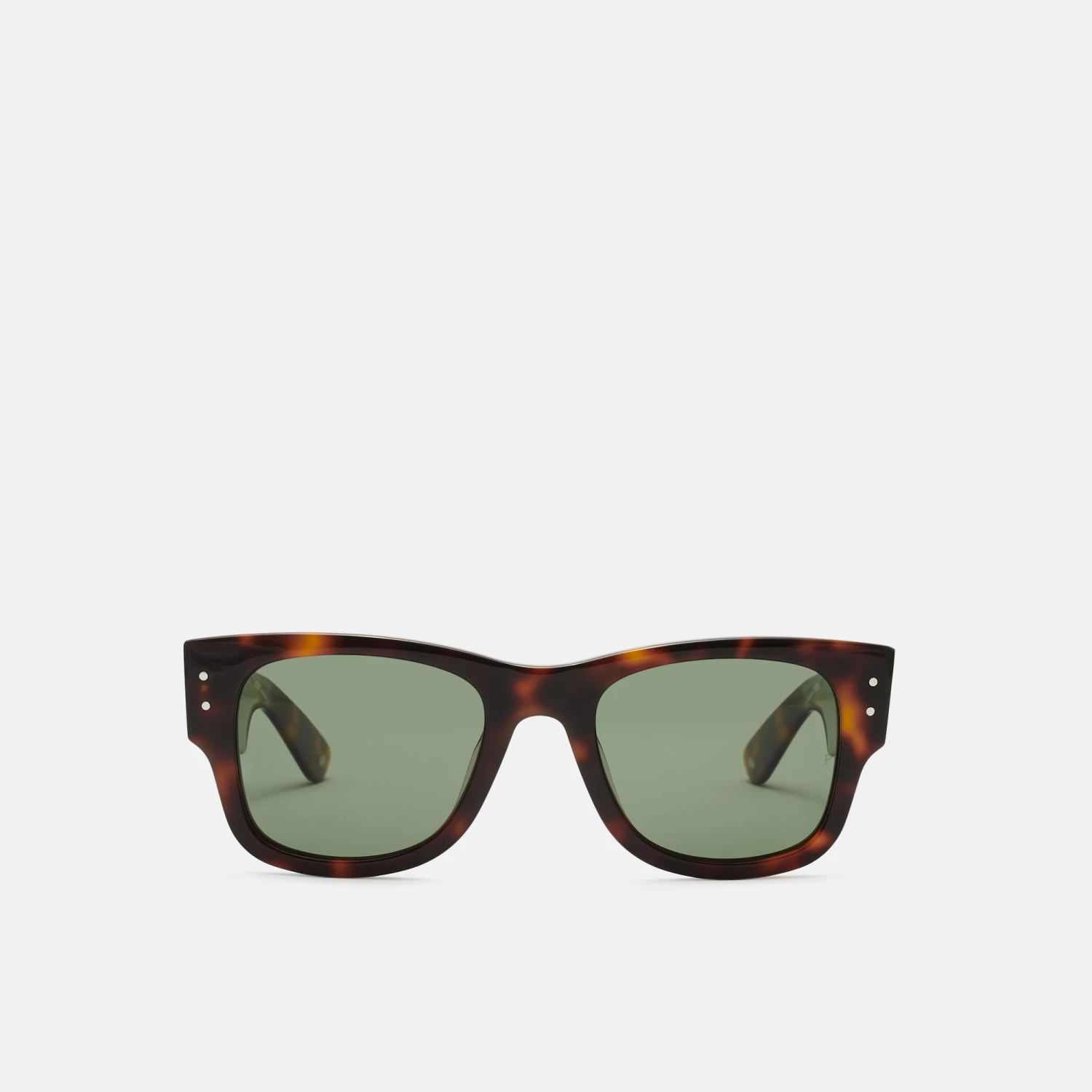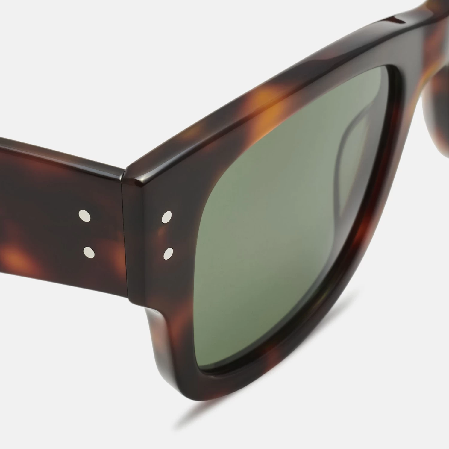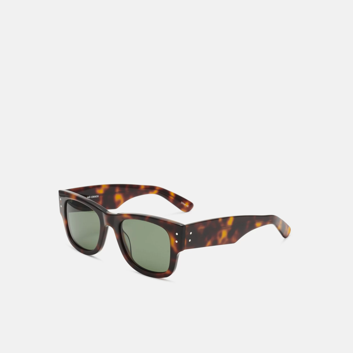 Gafas de sol unisex, con forma cuadrada, de acetato carey, con varillas anchas. Sus lentes verdes son polarizadas de alta calidad , para una mejor protección y confort.