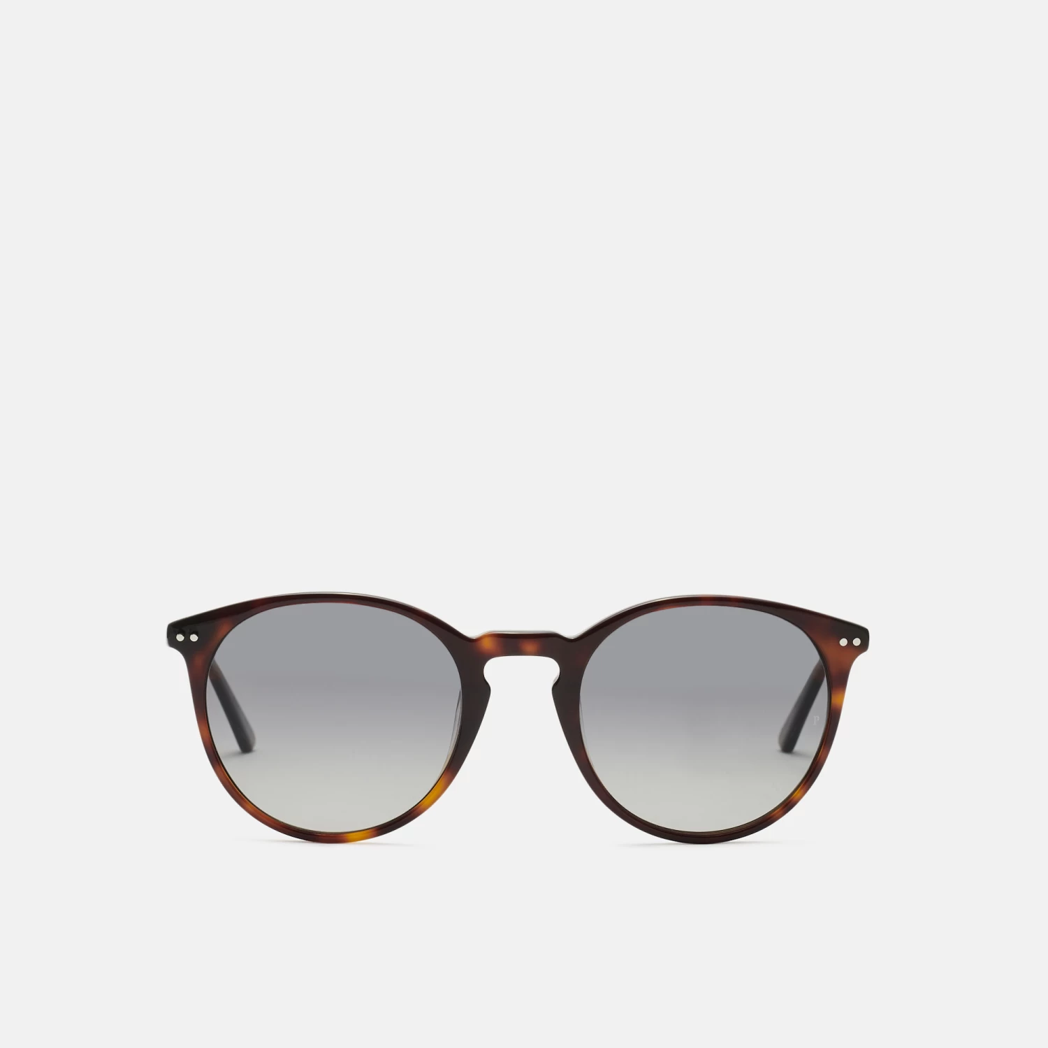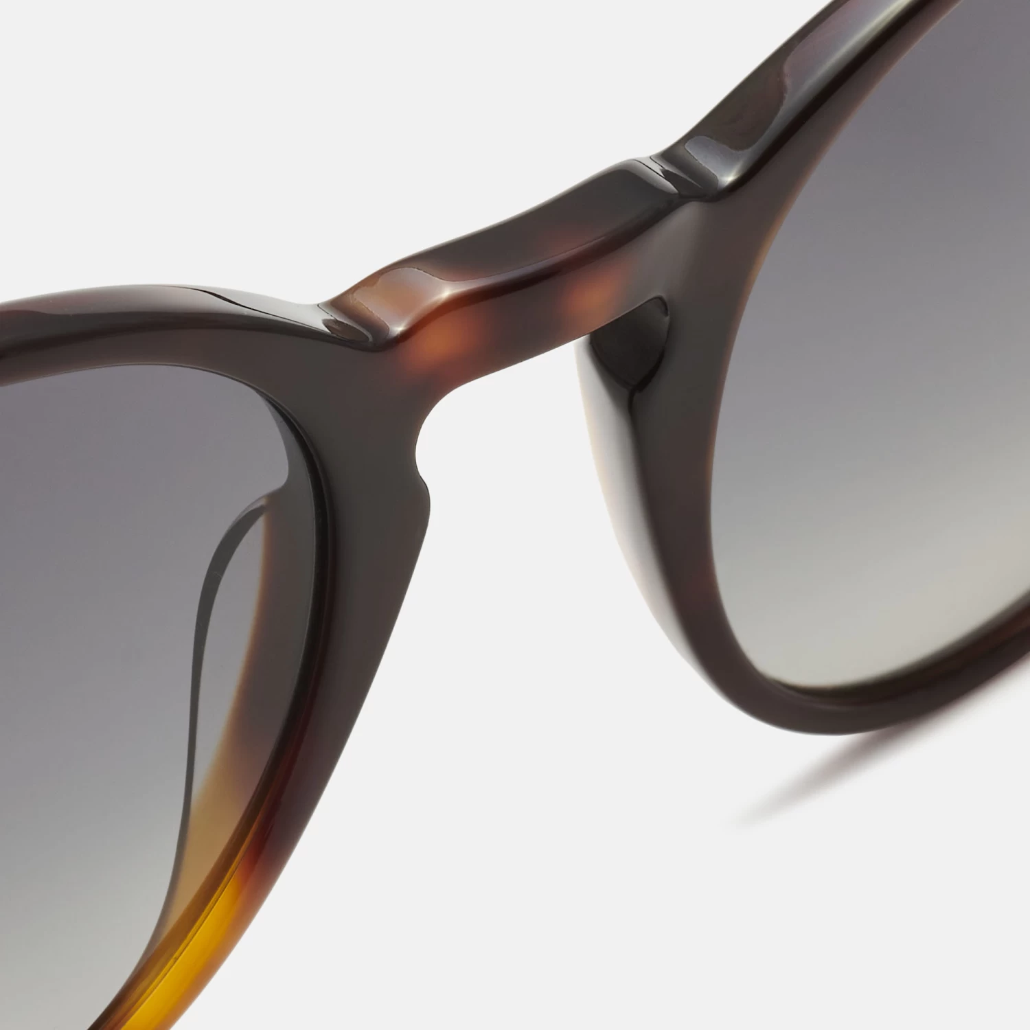 Gafas de sol unisex, con forma redonda, de acetato color carey. Sus lentes grises degradadas son polarizadas de alta calidad, para una mejor protección y confort.