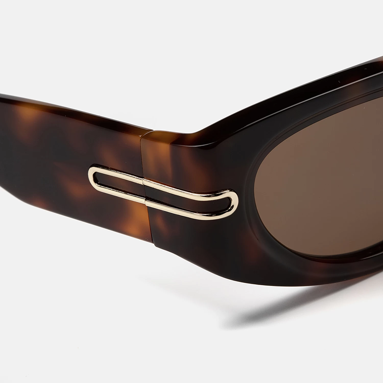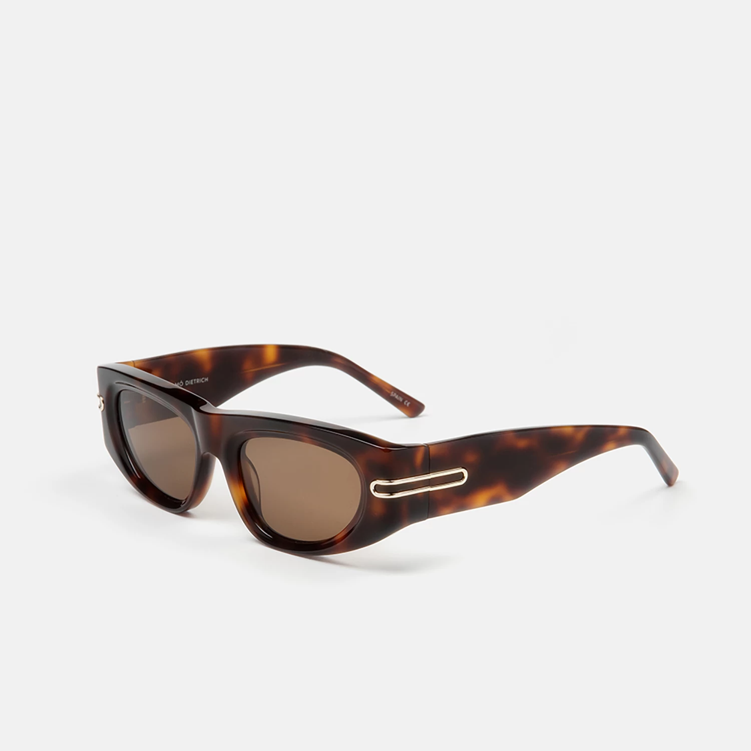 Gafas de sol para mujer, con forma rectangular , de acetato carey con grosor prominente y volumenes trabajados, adorna sus varillas un detalle metálico dorado que las hace únicas. Sus lentes marrones de alta calidad son polarizadas, para una mejor procción y confort.