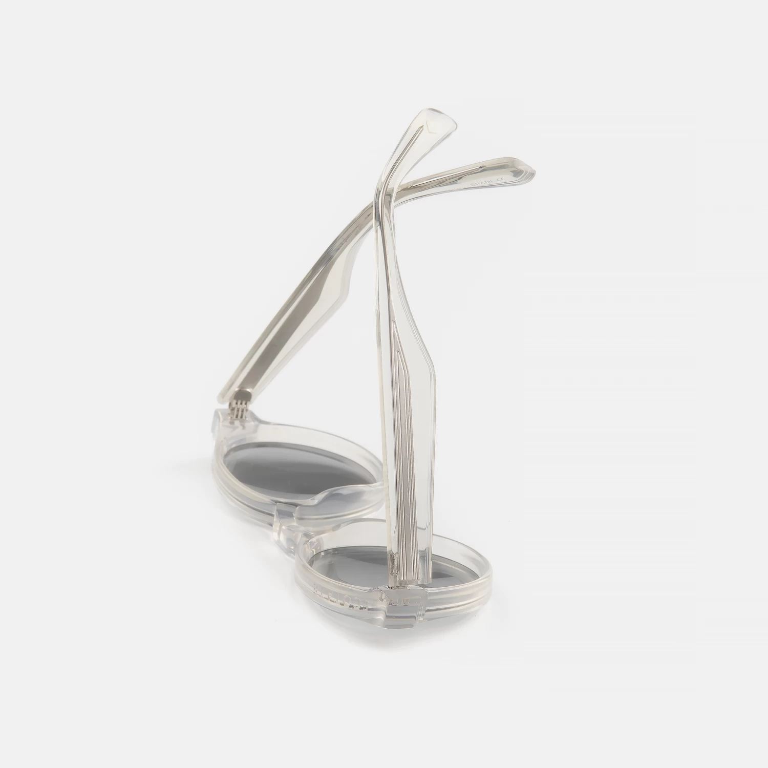 Gafas de sol unisex, de nuestra colección cápsula ECOTATE, diseñadas en material sostenible hexetate verde transparente, material ligero, resistente y sin plastificantes nocivos para el medio ambiente y la salud. La silueta es redonda de perfil grueso con pequeños escalones labrados en frente y varillas. Sus lentes son verdes translúcidas polarizadas, que permite una visión más nítida sin reflejos. Esta montura viene acompañada de un pack especial ECO con cajita, estuche y gamuza diseñados a partir de materiales reciclados.