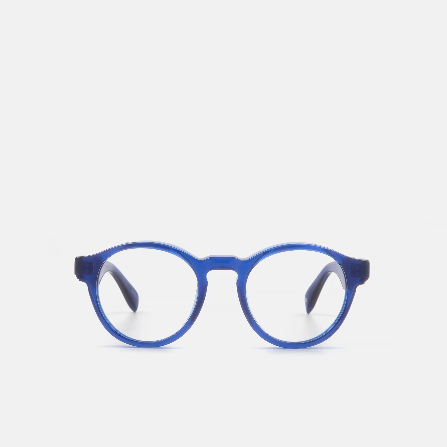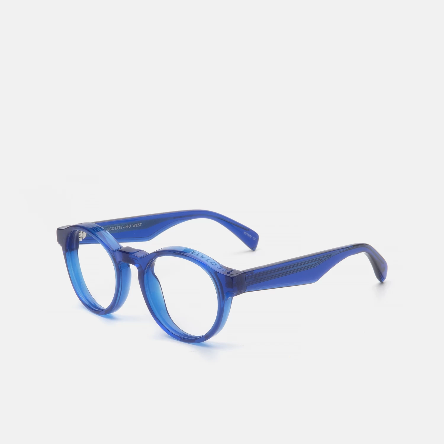 Gafas unisex de nuestra colección cápsula ECOTATE, diseñadas en material sostenible hexetate, material ligero, resistente y sin plastificantes nocivos. La silueta es redonda de perfil grueso con pequeños escalones labrados en frente y varillas. Esta montura viene acompañada de un pack especial ECO con cajita, estuche y gamuza diseñados a partir de materiales reciclados.