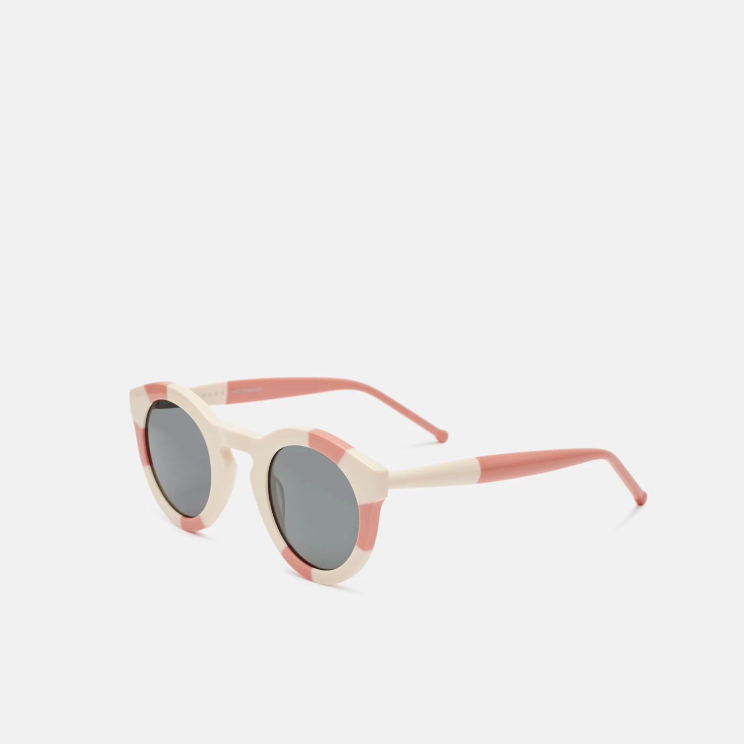 El modelo Mó Evason de la colección BLOCKS inspirada en la geométrica colorida con origen en el grupo artístico Memphis. Hecha en acetato, destaca por sus combinaciones de colores en beige y rosa clarito. Con silueta cat-eye y varilla circular. Sus lentes marrones degradadas de alta calidad, son polarizadas para una mayor protección y confort. Estas gafas son un complemento original y atrevido para completar cualquier look.