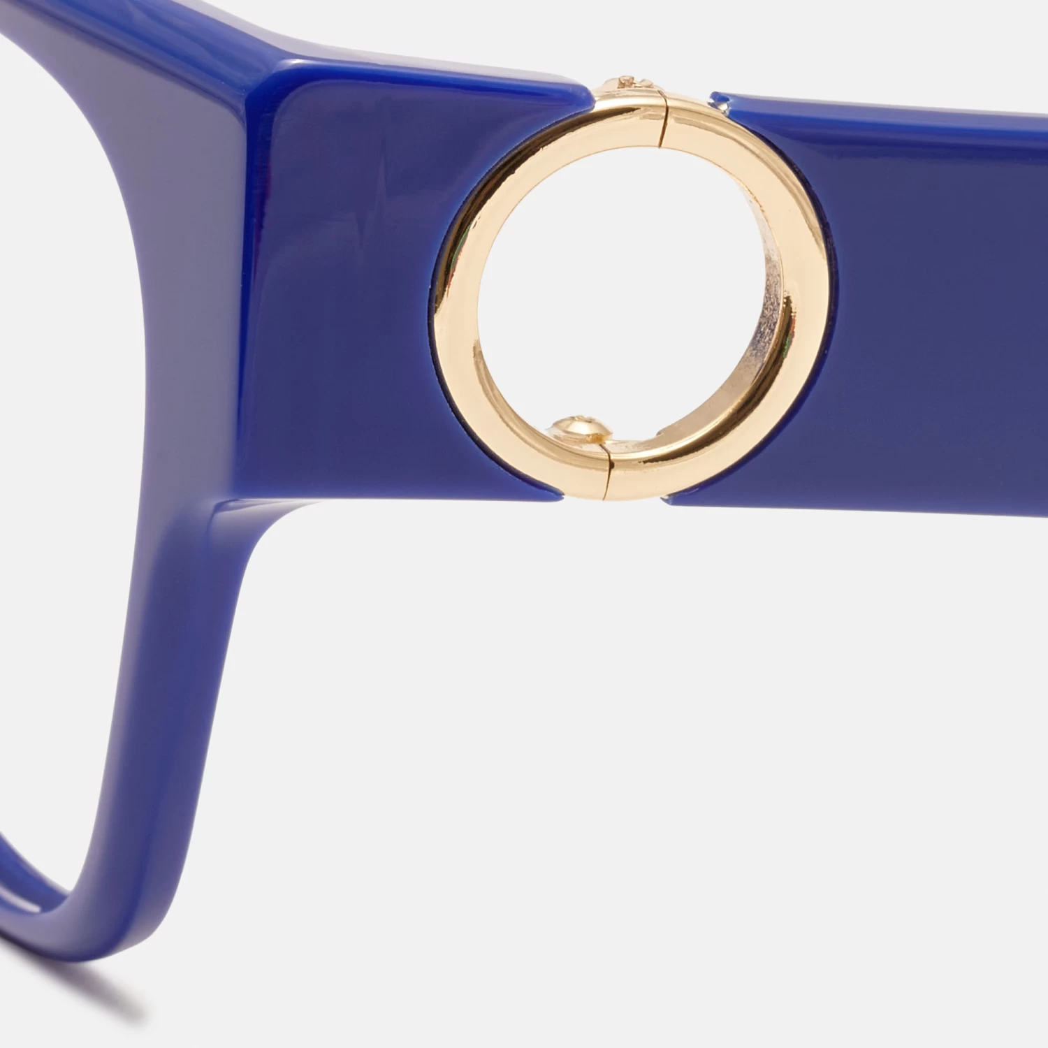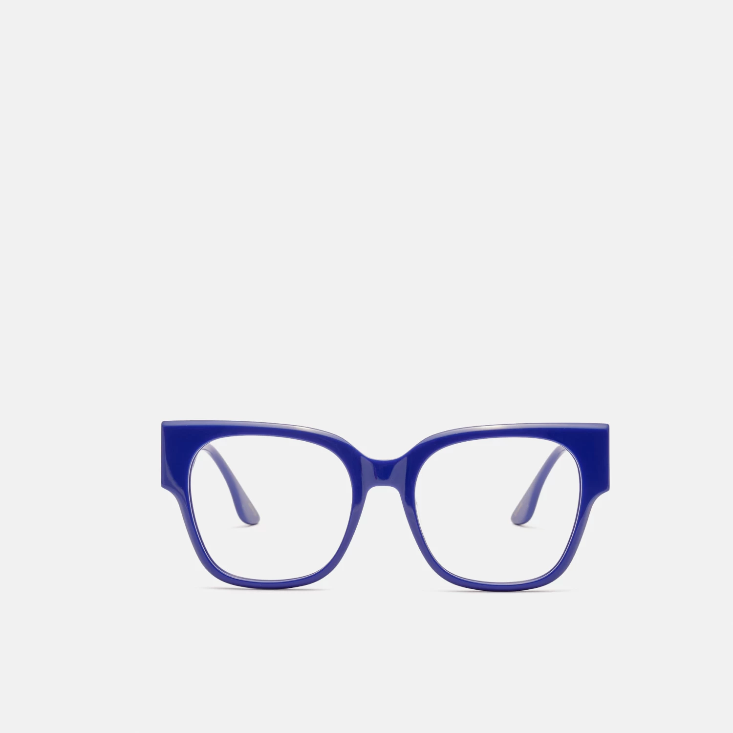 El modelo de gafas Adriana pertenece a la colección cápsula MÓ FRONT ROW, es para mujer , están diseñadas en acetato azul eléctrico, con silueta cuadrada «oversize».