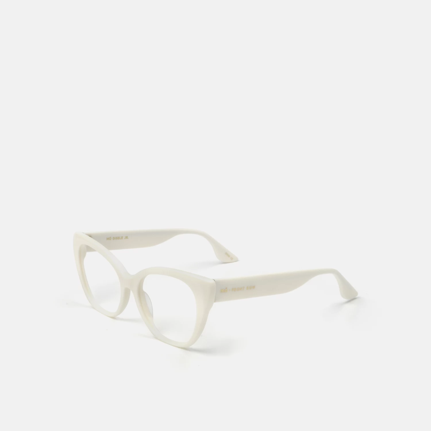 El modelo Gisele Jr. son gafas para mujer, de acetato color beige, con silueta cat-eye y perfil ancho. Pertenecen a nuestra cápsula FRONT ROW. Estas gafas van acompañadas de un estuche-bolsito y gamuza engamados con el color de la montura.
