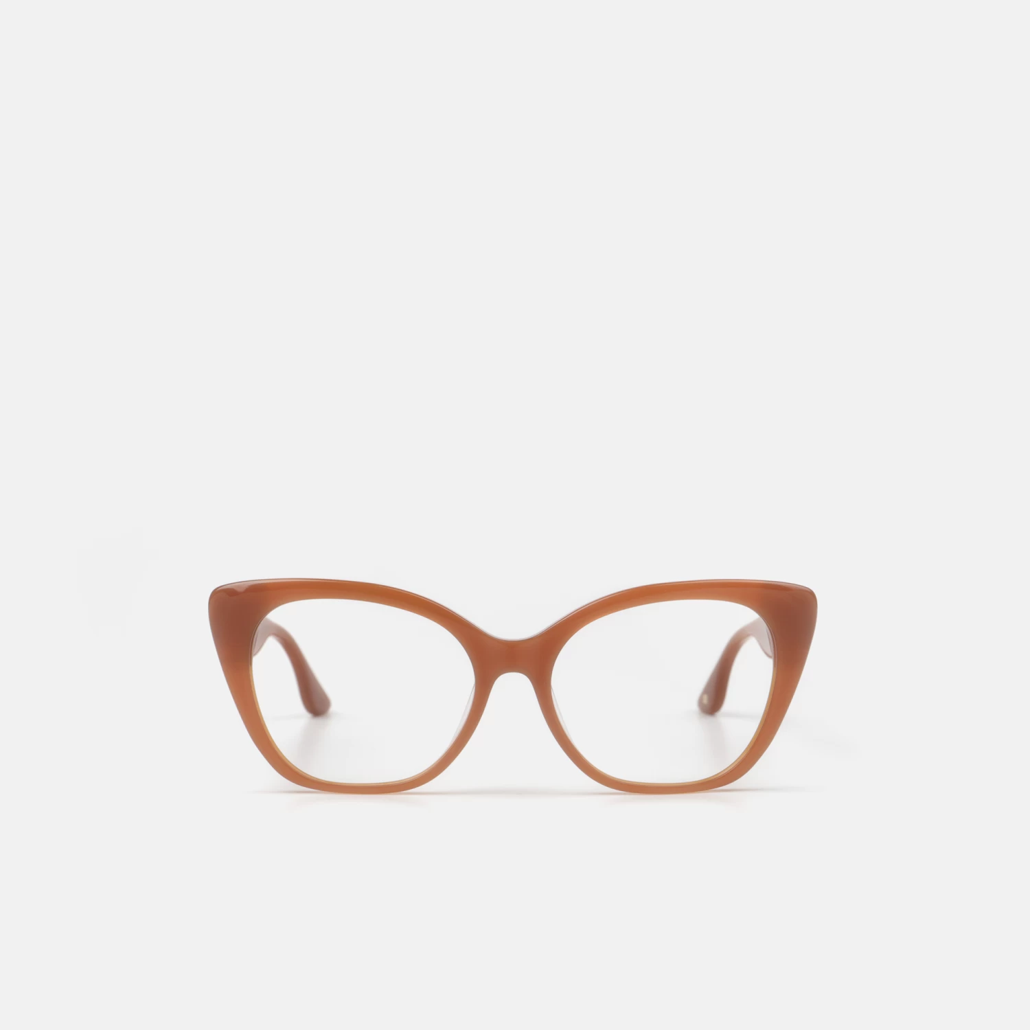 El modelo Gisele Jr. son gafas para mujer, de acetato color marrón arcilla, con silueta cat-eye y perfil ancho. Pertenecen a nuestra cápsula FRONT ROW. Estas gafas van acompañadas de un estuche-bolsito y gamuza engamados con el color de la montura.