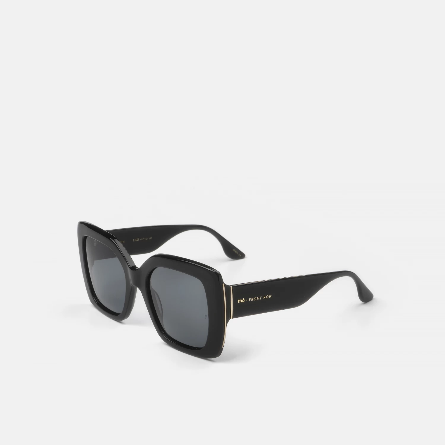 El modelo Heidi son gafas de sol para mujer de acetato color negro, con silueta cuadrada oversize y perfil ancho. Sus lentes son grises polarizadas. Pertenecen a nuestra cápsula FRONT ROW. Estas gafas van acompañadas de un estuche-bolsito y gamuza enbolsito y gamuza engamados con el color de la montura.