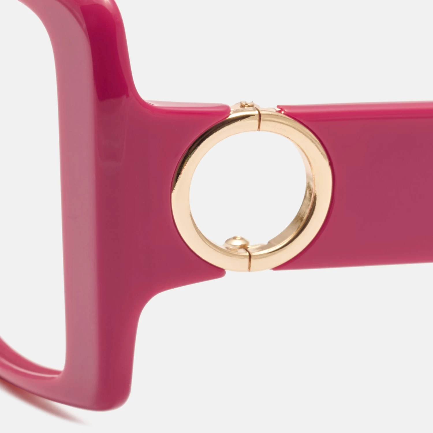 El modelo de gafas Miranda pertenece a la colección cápsula MÓ FRONT ROW, es para mujer , están diseñadas en acetato rosa, con silueta cuadrada «oversize».