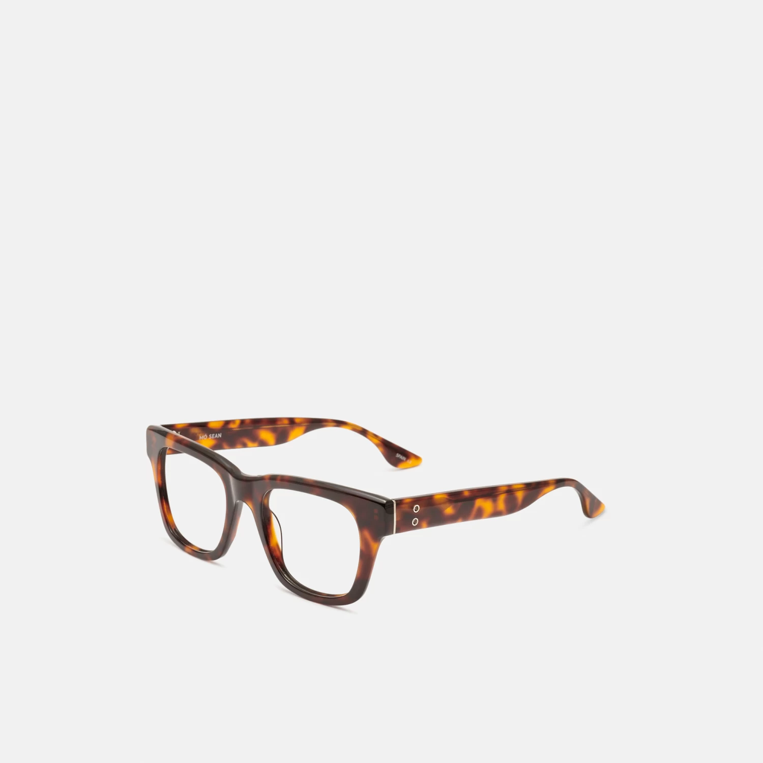 El modelo de gafas Sean pertenece a la colección cápsula MÓ FRONT ROW, es para hombre, están diseñadas en acetato carey, con silueta cuadrada.