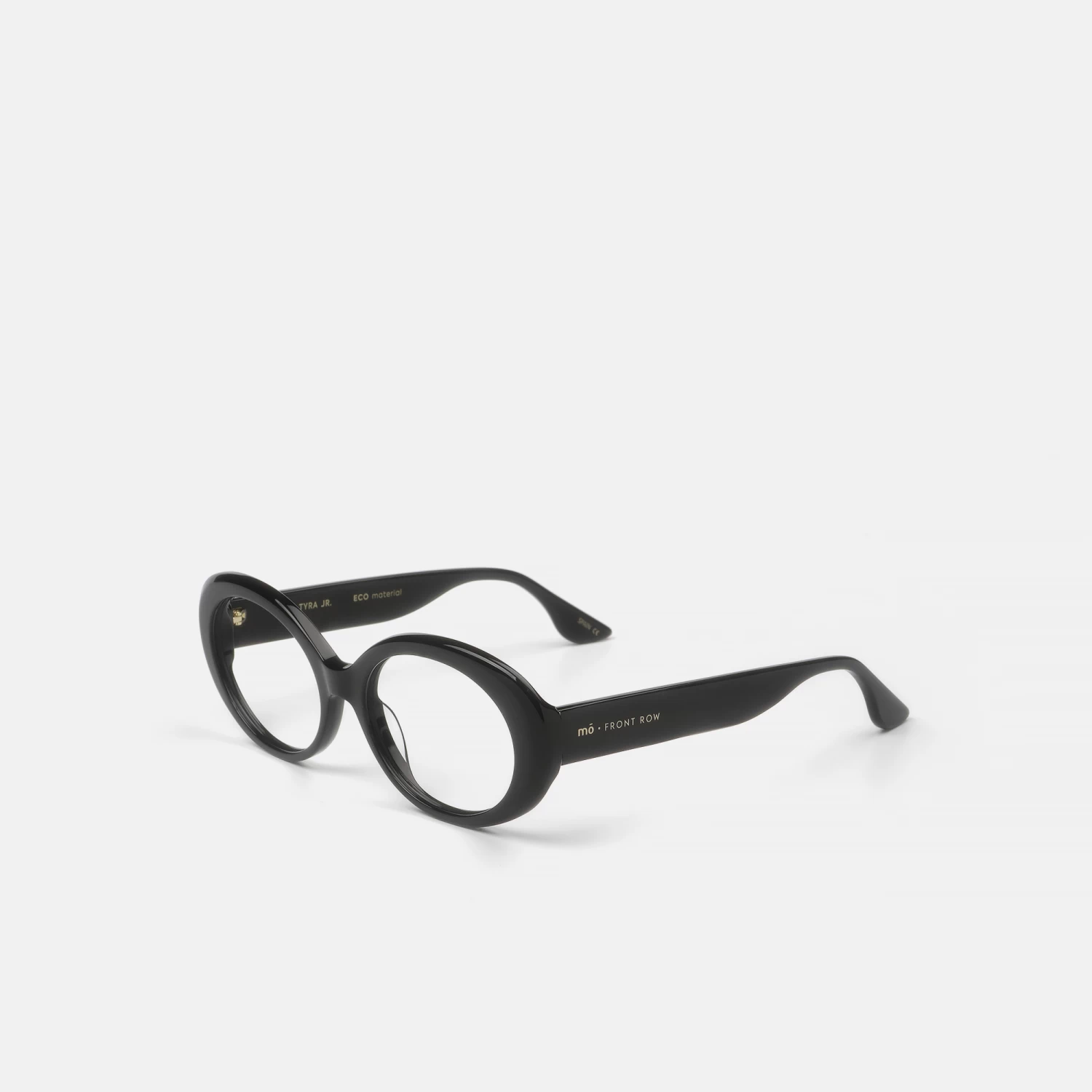 El modelo Tyra Jr. son gafas para mujer, de acetato color negro, con silueta cat-eye y perfil ancho. Sus lentes son grises polarizadas. Pertenecen a nuestra cápsula FRONT ROW. Estas gafas van acompañadas de un estuche-bolsito y gamuza engamados con el color de la montura.