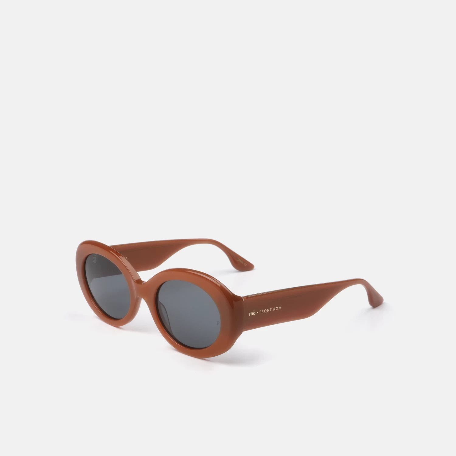 El modelo Tyra son gafas de sol para mujer de acetato color marrón arcilla, con silueta ovalada y perfil ancho. Sus lentes son grises polarizadas. Pertenecen a nuestra cápsula FRONT ROW. Estas gafas van acompañadas de un estuche-bolsito y gamuza engamados con el color de la montura.