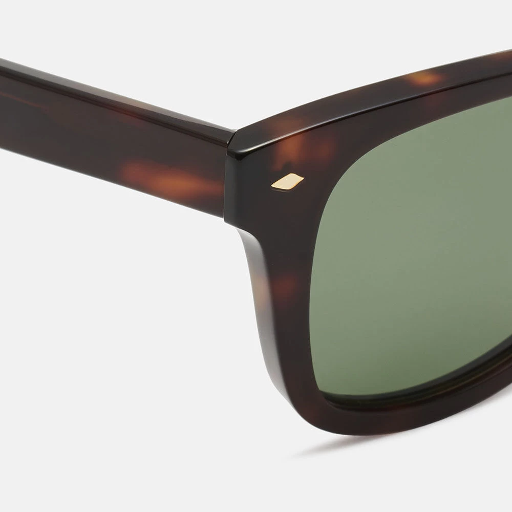 Gafas de sol unisex, con forma cuadrada, de acetato carey. Sus lentes verdes son polarizadas de alta calidad, para una mejor protección y confort.
