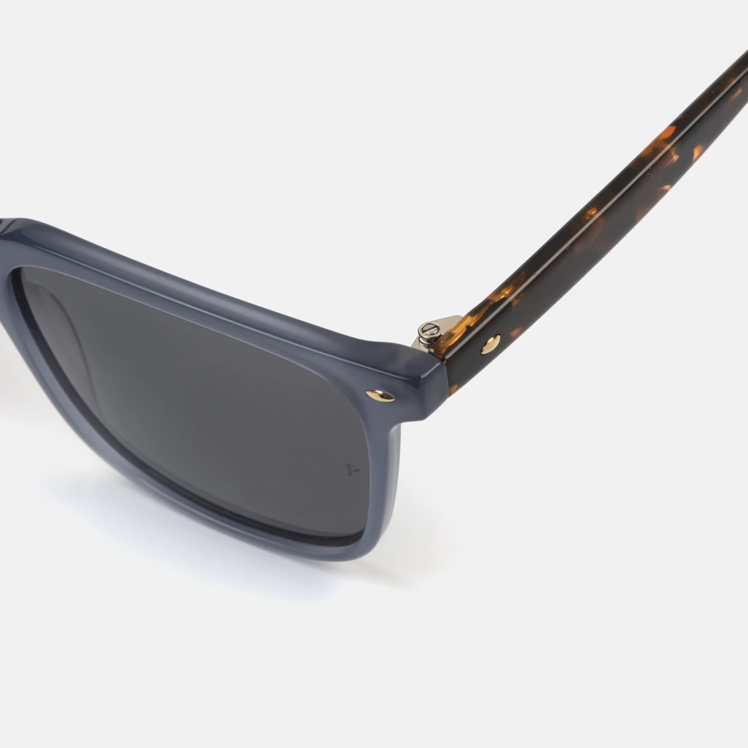 El modelo MÓ Kahurangi es una gafa clásica y atemporal por su forma cuadrada y de tamaño medio. Su diseño en acetato de espesor fino la hace ligera y perfecta para el día a día. En acetato color azul en el frente y carey en varilla con detalles metálicos en dorado.