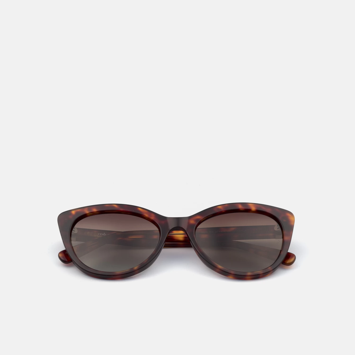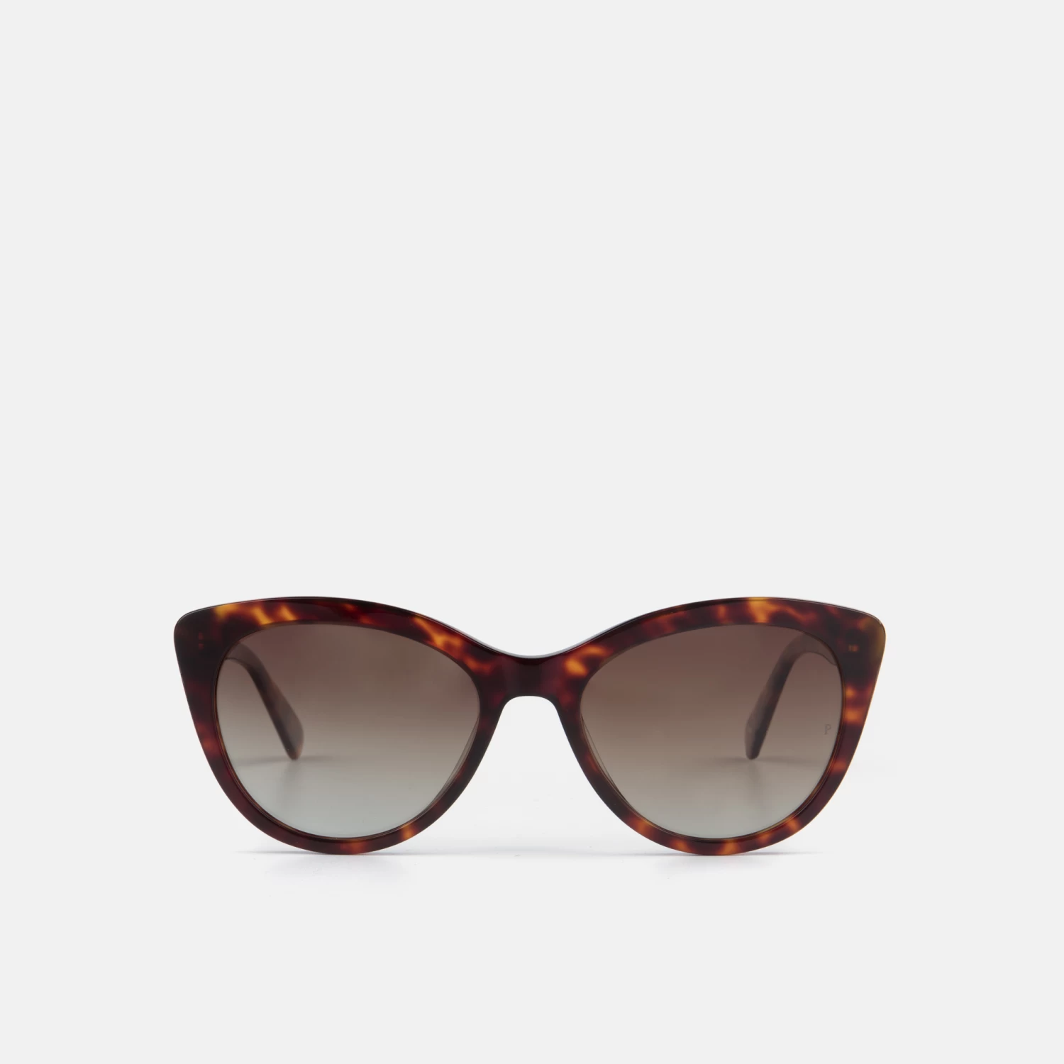 Gafas de sol con forma cat-eye, de acetato carey ámbar con lente marrón polarizada.