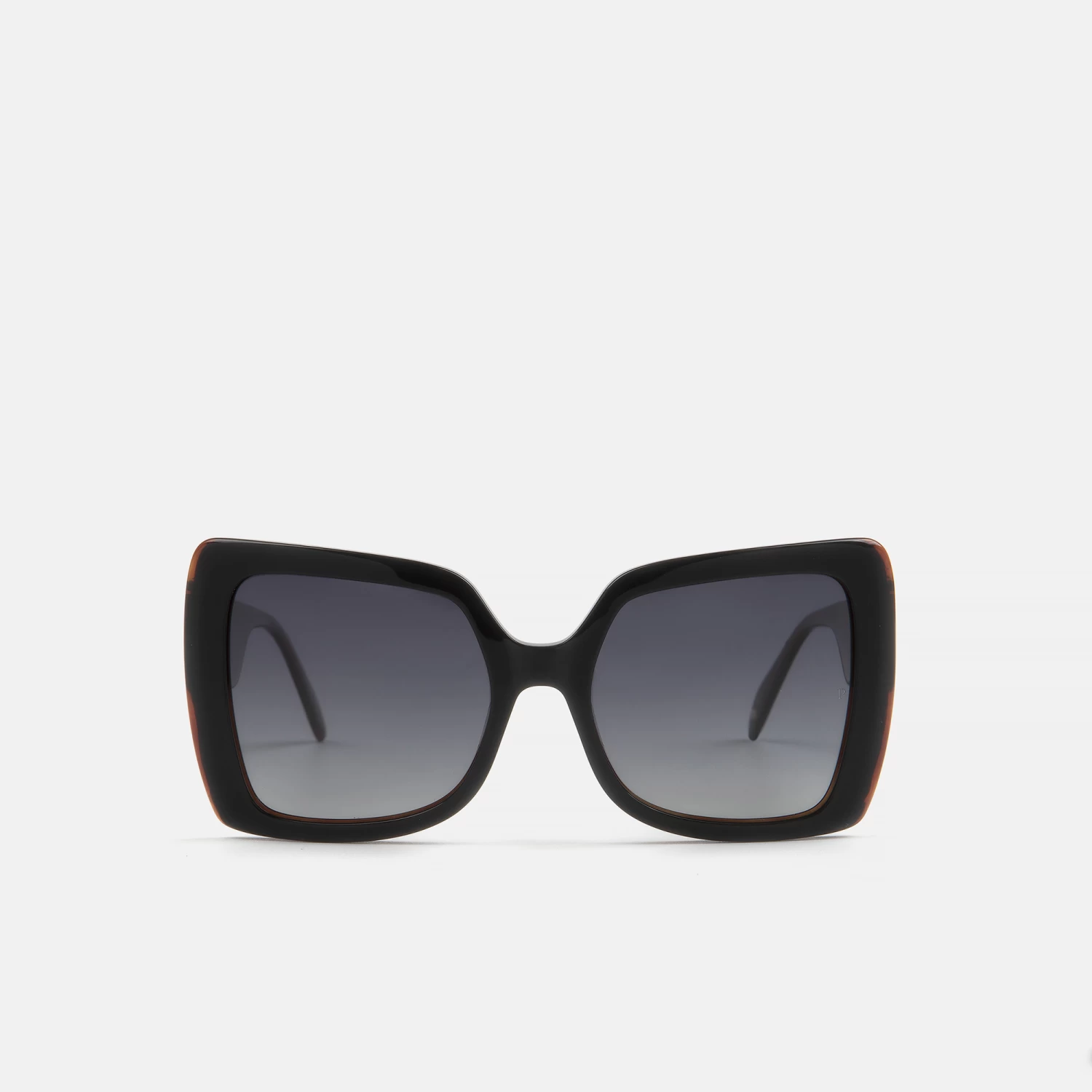 Gafa de sol de mujer, con forma retro oversize , de acetato negro, cuenta con laminaciones y slope down en el frente y varillas. En la varilla destaca el detalle metal deco con relieve, que eleva la gafa y da personalidad a la montura. Con lente degradada para una mirada más sofisticada. Sus lentes polarizadas proporcionan una visión más nítida y un mejor contraste.