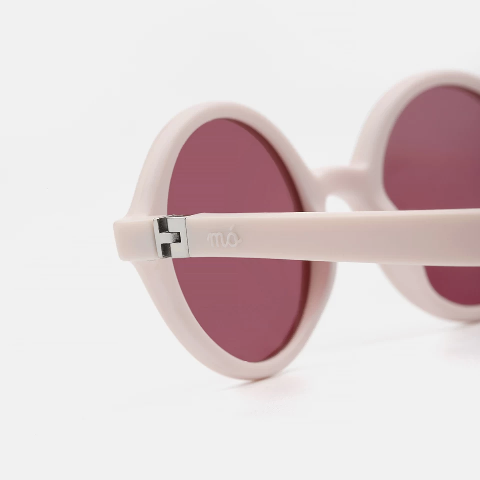 Gafas «kids» diseñadas en silicona suave y resistente, con forma redonda en color rosa pastel y decoraciones metálicas. Sus varillas especiales con bisagra 180° de apertura, las dota de mucha resistencia y comodidad para los más pequeños de la casa. Sus lentes rosas son polarizadas ofrecen una visión más nítida y contrastada y un mayor confort visual.