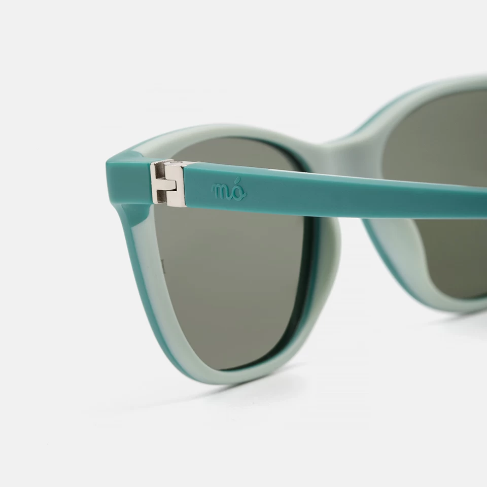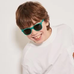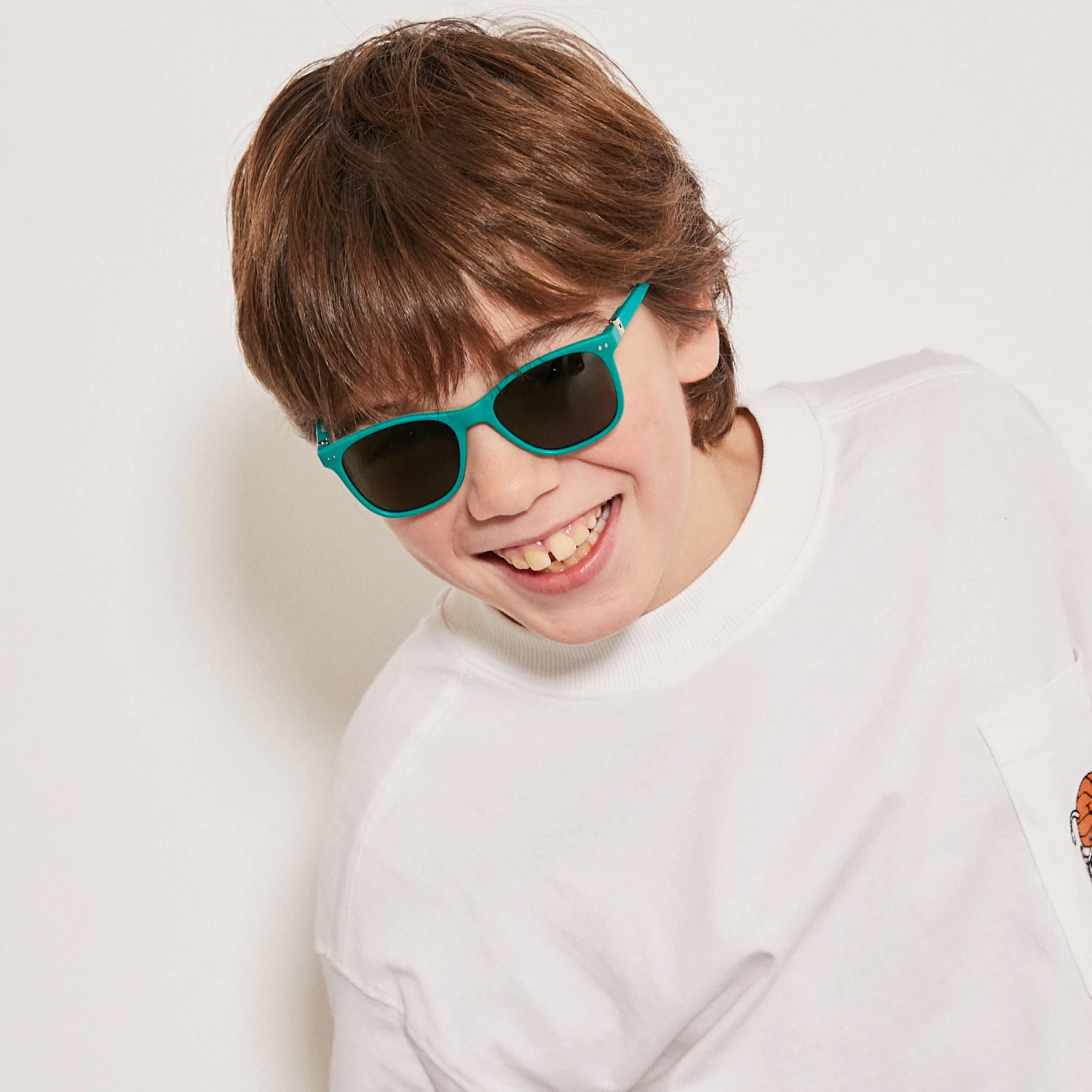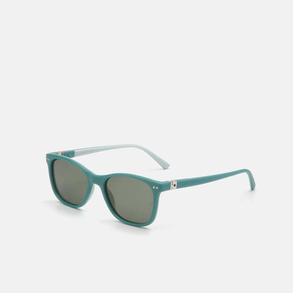 Gafas «kids» diseñadas en silicona suave y resistente, con forma cuadrada en color verde y decoraciones metálicas. Sus varillas especiales con bisagra 180° de apertura, las dota de mucha resistencia y comodidad para los más pequeños de la casa. Sus lentes verdes son polarizadas ofrecen una visión más nítida y contrastada y un mayor confort visual.