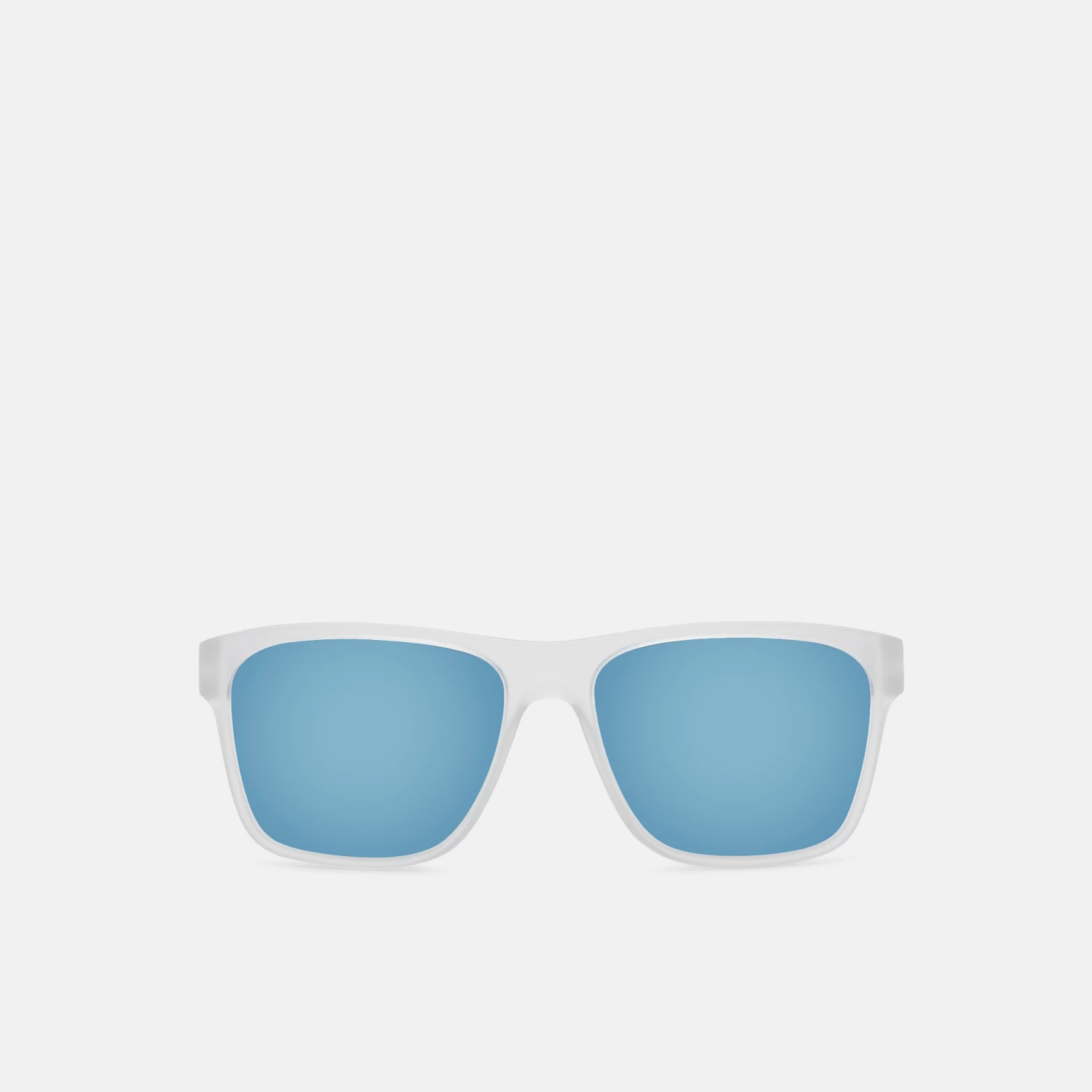 Gafas de sol con forma cuadrada, de material ECO G850 transparente mate que ofrece una gran resistencia y ligereza. Además, sus detalles engomados azulados aportan una mayor comodidad y sujeción. Sus lentes azules espejadas de alta calidad son polarizadas para una mejor protección, asegurando una experiencia cómoda y segura para tus ojos.