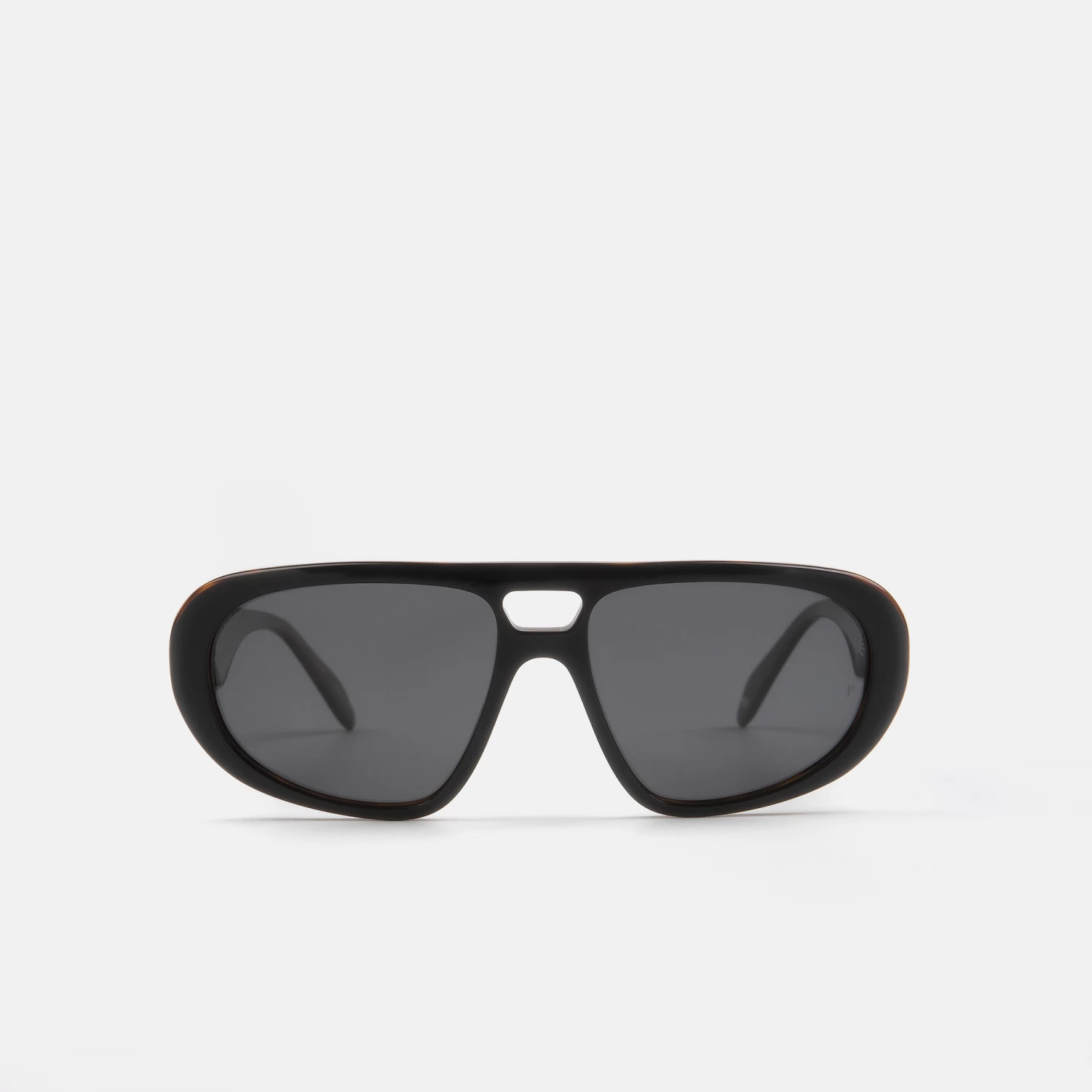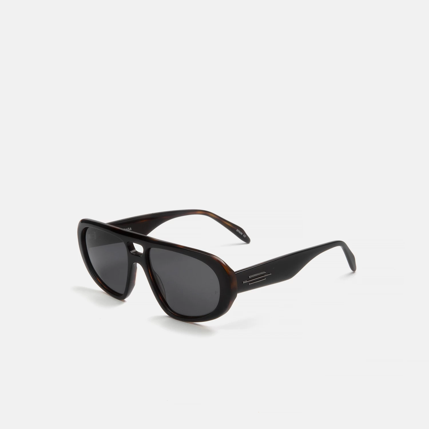 Gafa de sol masculina, con forma aviador estilo retro, de acetato negro, cuenta con detalles metálicos en relieve, que elevan la gafa y dan personalidad. Sus lentes polarizadas proporcionan una visión más nítida y un mejor contraste.