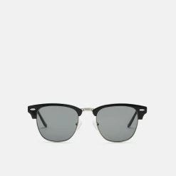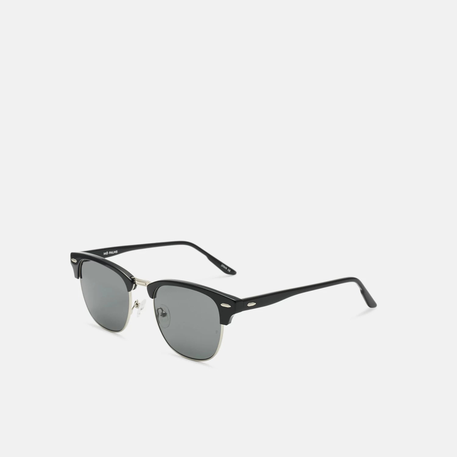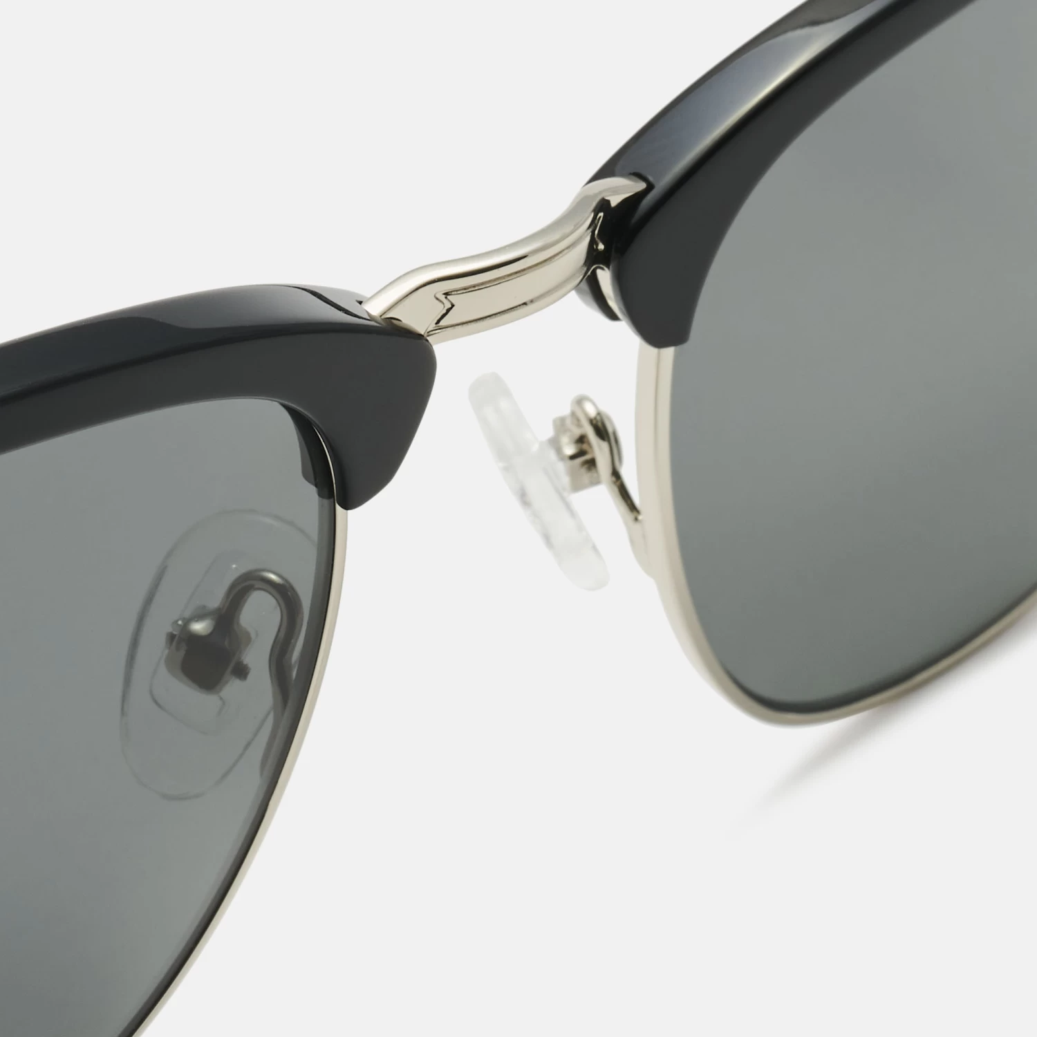 Gafas de sol unisex, con forma cuadrada y estructura combinada de metal color plateado y acetato negro. Sus lentes grises son polarizadas de alta calidad, para una mejor protección y confort.