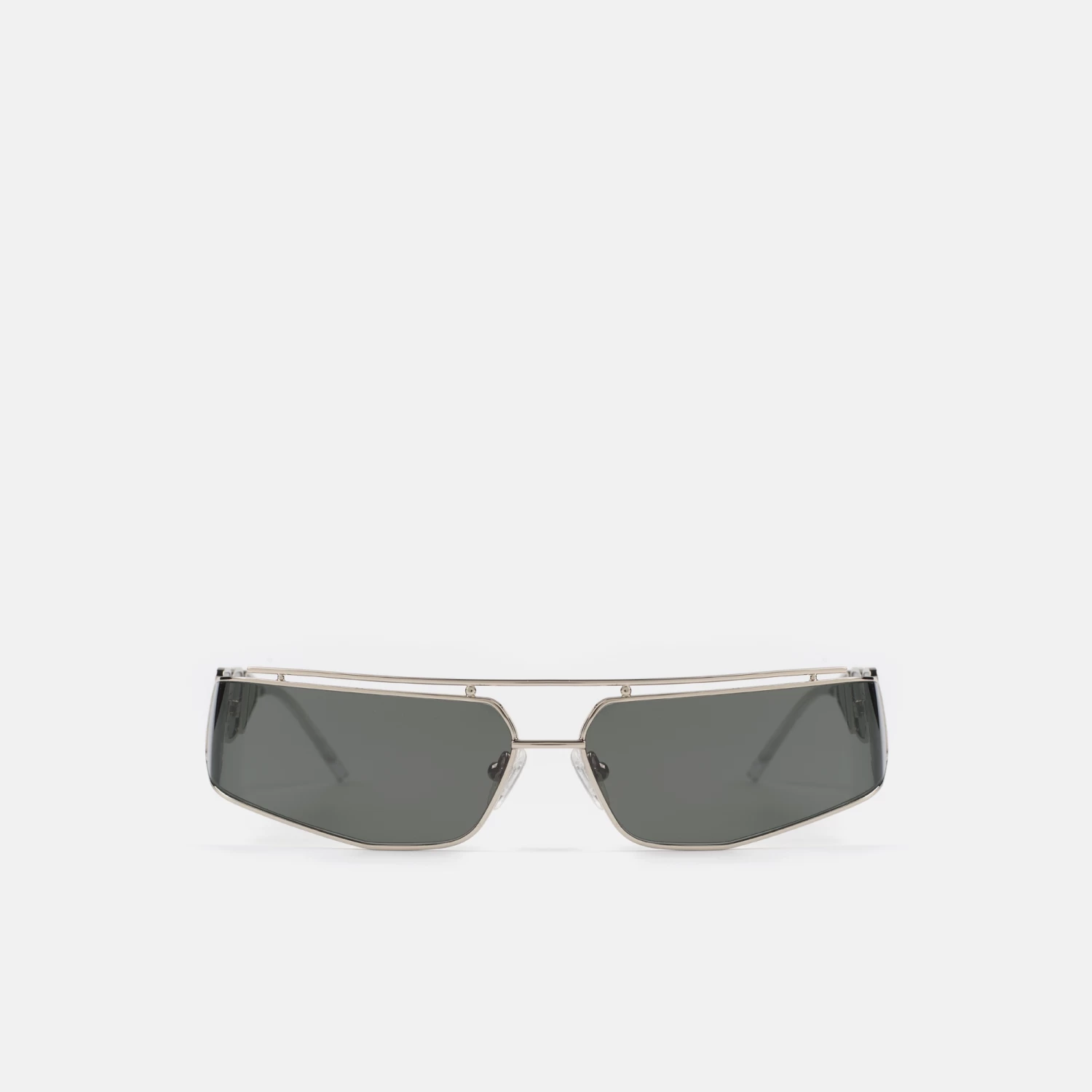 Gafas de sol creadas en colaboración con el diseñador PALOMÓ SPAIN. Estas gafas unisex con forma rectangular están fabricadas en acero inoxidable dorado de alta calidad, su varilla tiene un diseño vanguardista incluyendo lentes en diferentes tamaños. La lente es de color verde con diseño envolvente. Estas gafas incluyen un estuche formato minibolso en color negro con tira de polipiel.