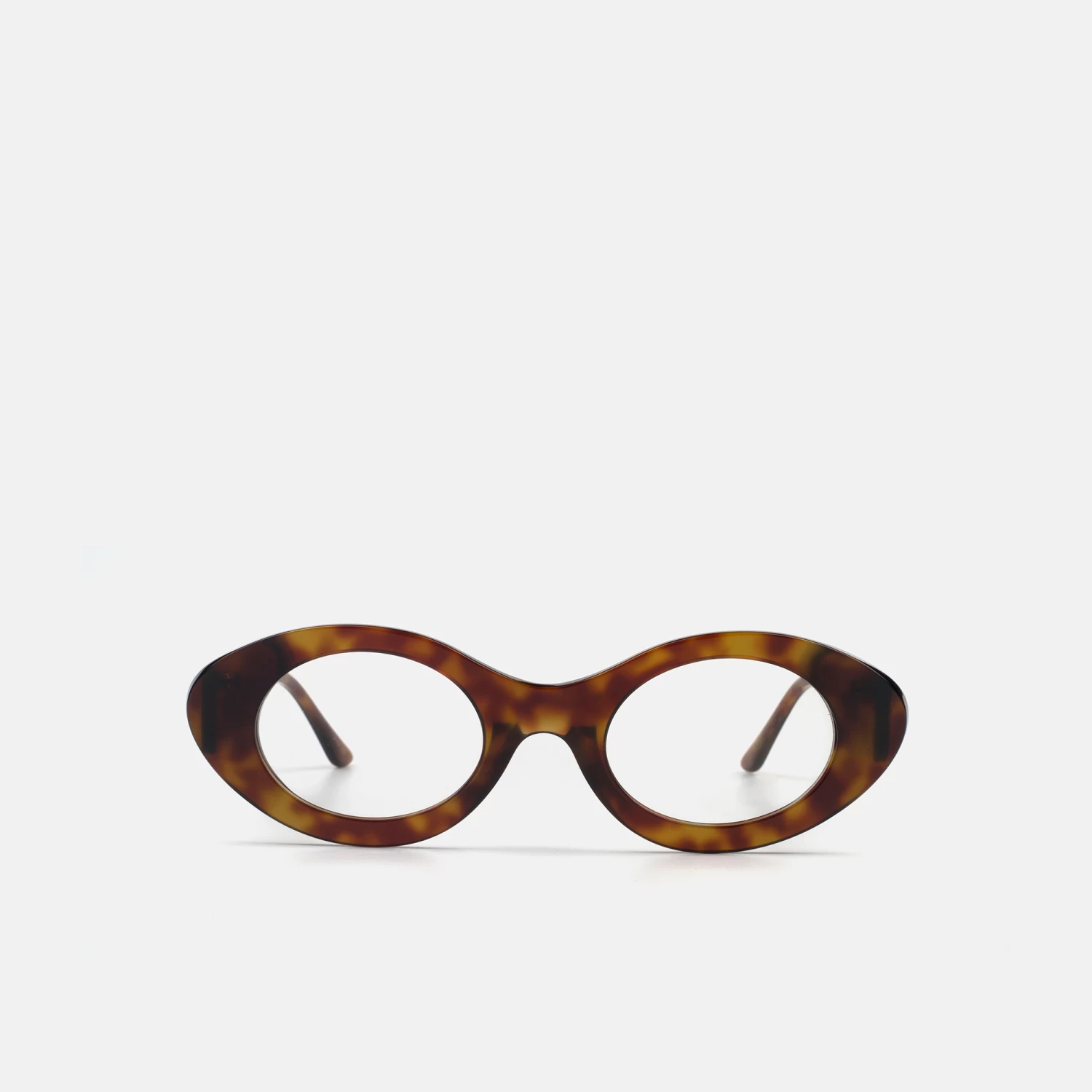 Manuela es un modelo unisex que cuenta con una silueta cat eye, fabricada en acetato color carey.