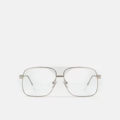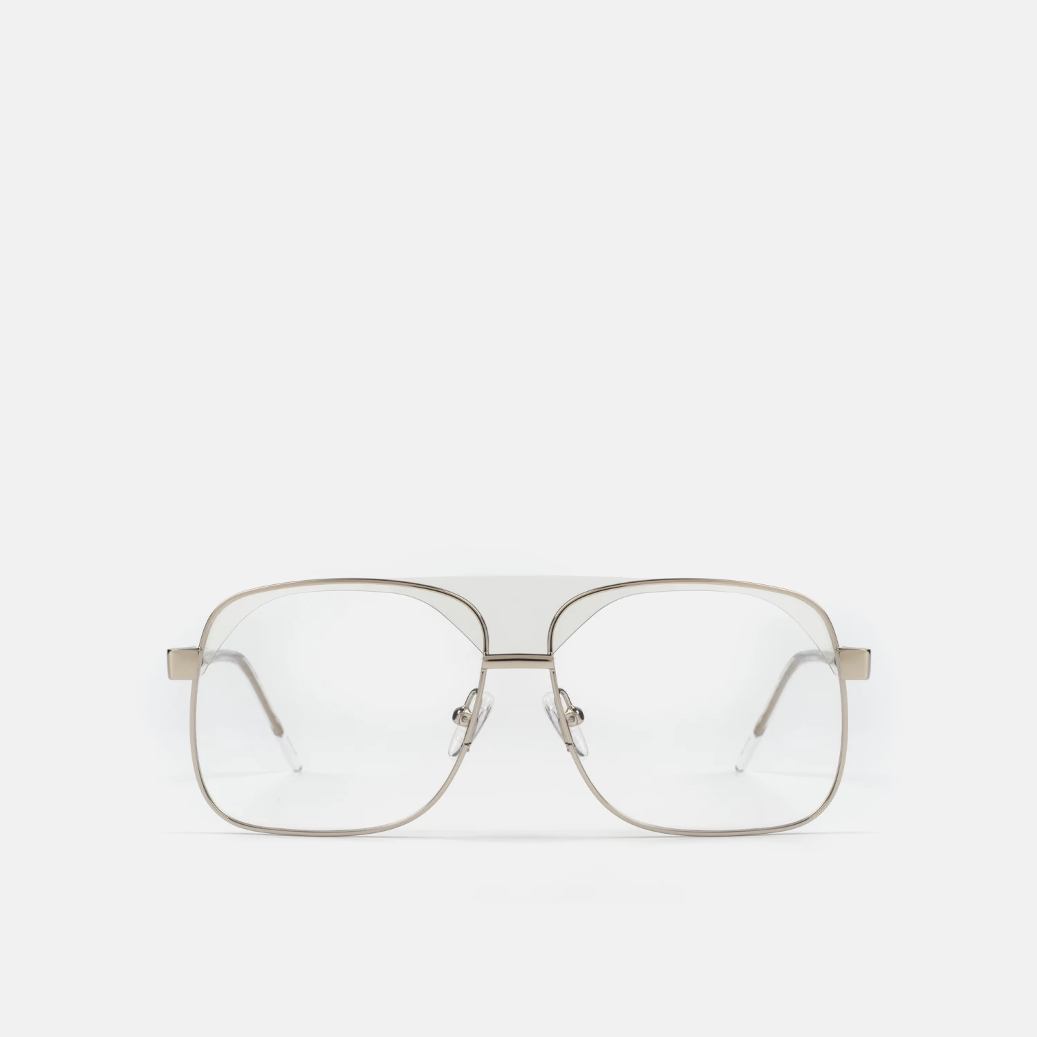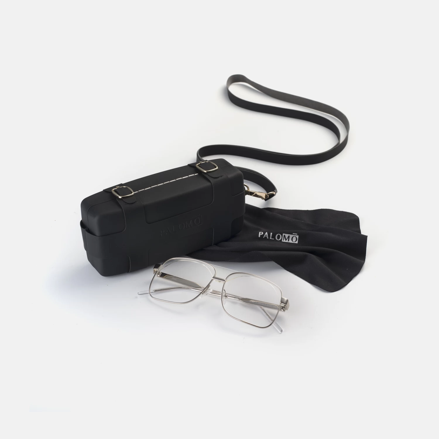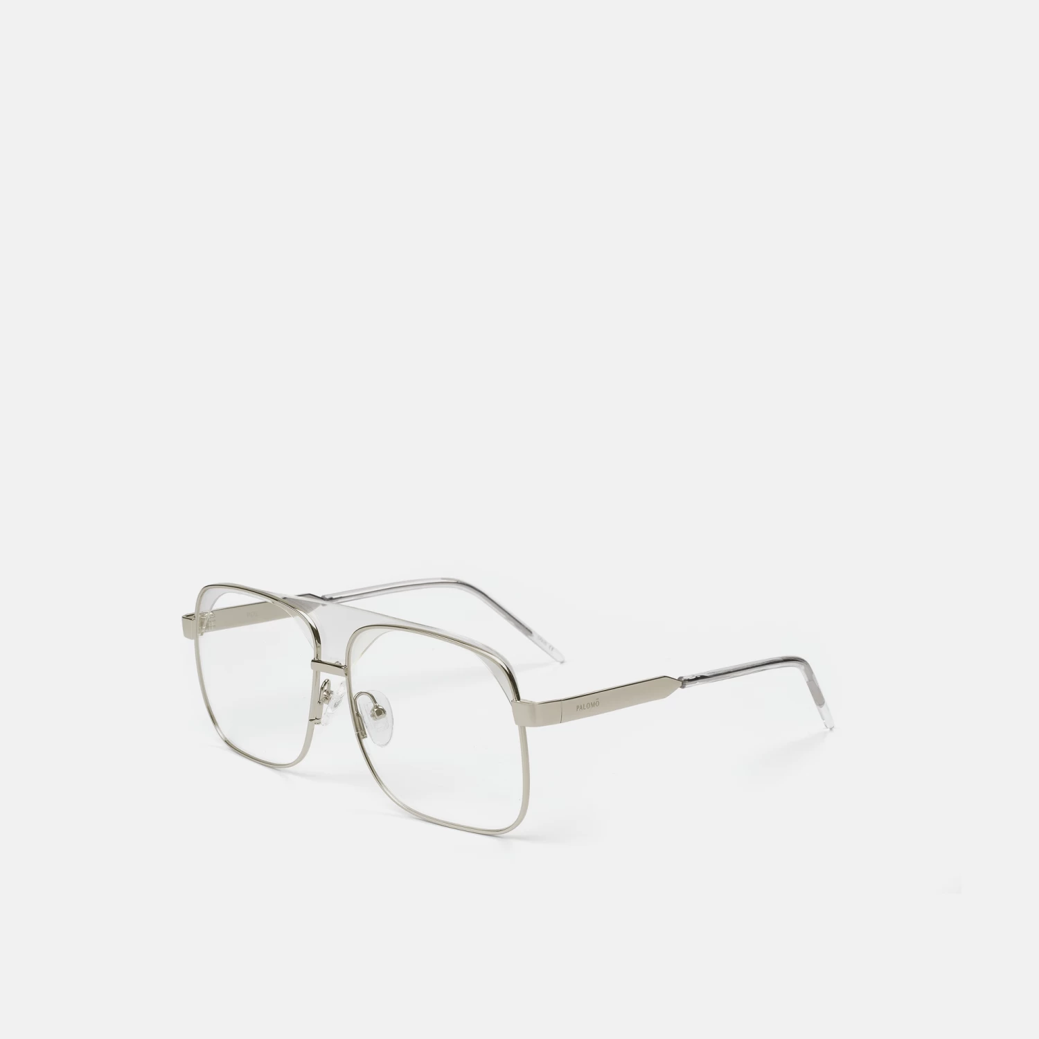 Gafas para graduar creadas en colaboración con el diseñador PALOMÓ SPAIN. Estas gafas unisex con forma cuadrada están fabricadas en acero inoxidable dorado de alta calidad y con una fina lámina transparente de acetato en la parte superior. Estas gafas incluyen un estucheformato minibolso en color negro con tira de polipiel.