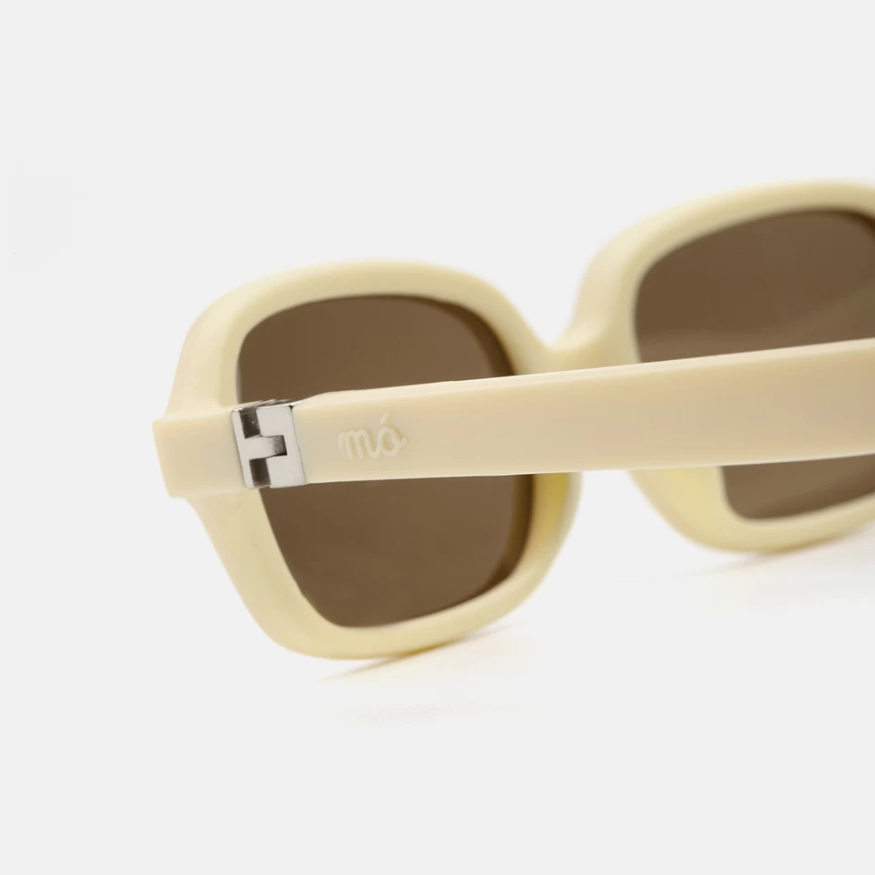 Gafas «kids» diseñadas en silicona suave y resistente, con forma rectangular en color amarillo pastel y decoraciones metálicas. Sus varillas especiales con bisagra 180° de apertura, las dota de mucha resistencia y comodidad para los más pequeños de la casa. Sus lentes marrones son polarizadas ofrecen una visión más nítida y contrastada y un mayor confort visual.