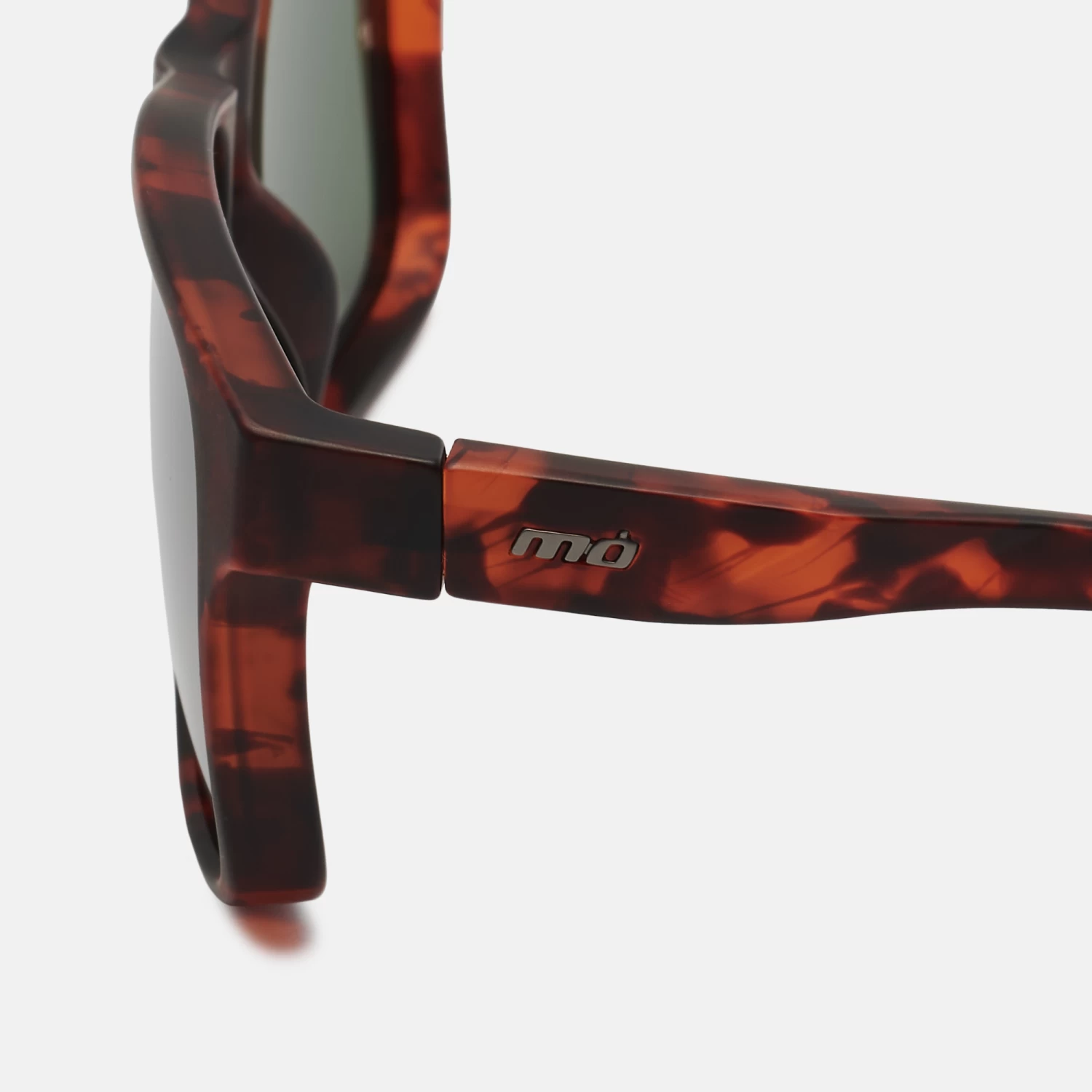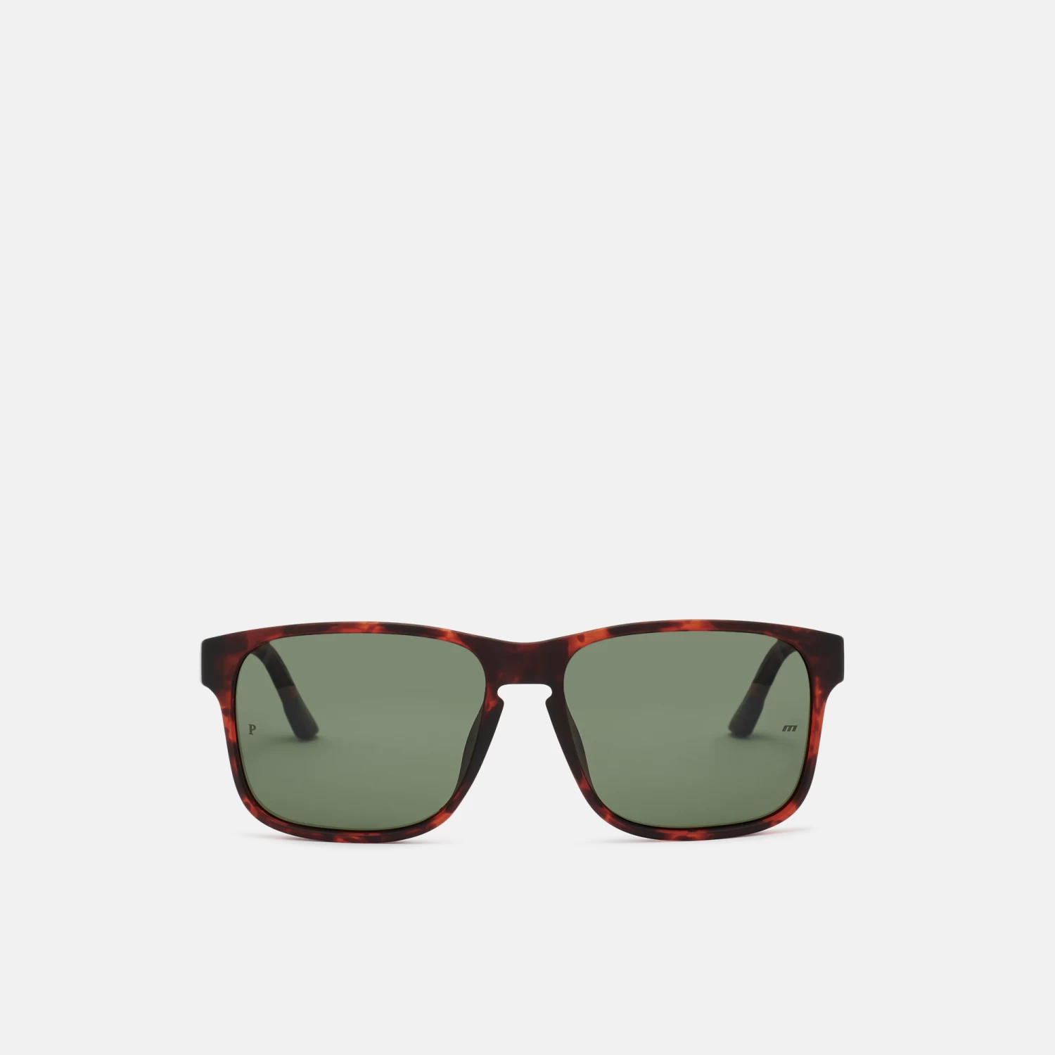 Gafas de sol con forma cuadrada, de material ECO G850 color carey que ofrece una gran resistencia y ligereza. Sus lentes verdes de alta calidad son polarizadas para una mejor protección , asegurando una experiencia cómoda y segura para tus ojos.