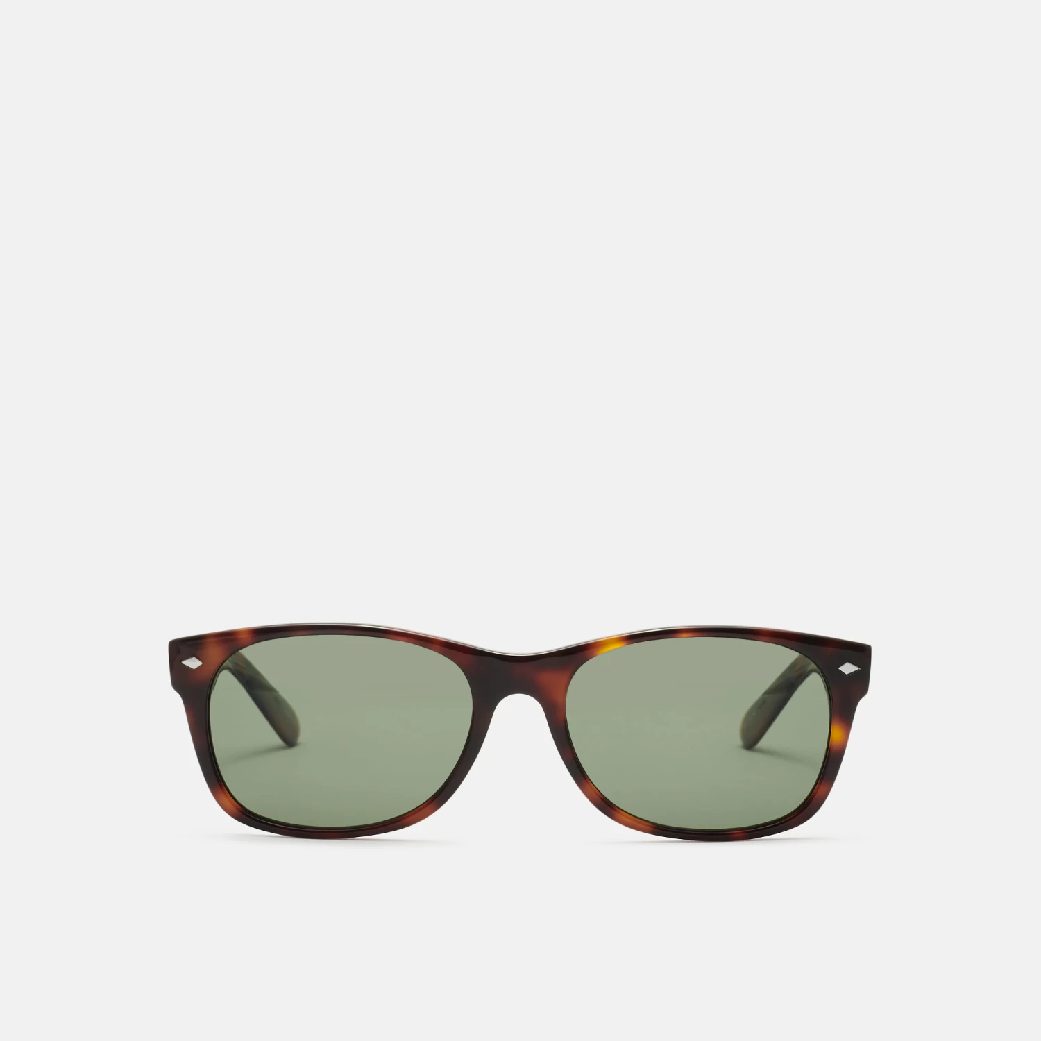 Gafas de sol unisex, con forma cuadrada, de acetato carey. Sus lentes verdes son polarizadas de alta calidad, para una mejor protección y confort.