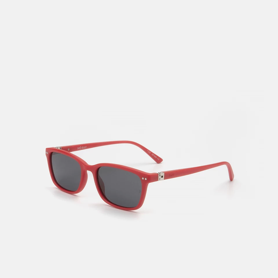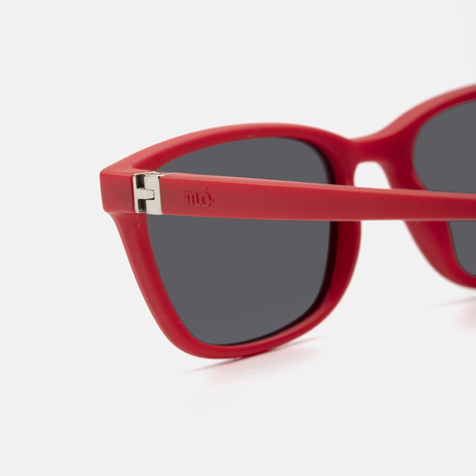 Gafas «kids» diseñadas en silicona suave y resistente, con forma rectangular en color rojo y decoraciones metálicas. Sus varillas especiales con bisagra 180° de apertura, las dota de mucha resistencia y comodidad para los más pequeños de la casa. Sus lentes grises son polarizadas ofrecen una visión más nítida y contrastada y un mayor confort visual.