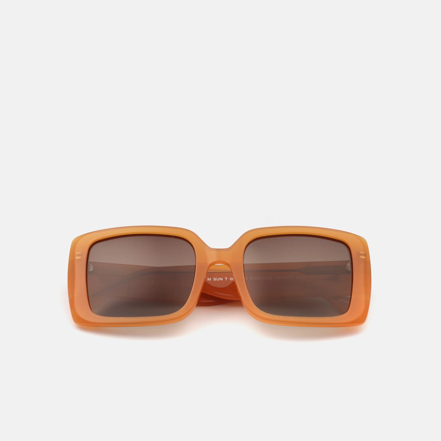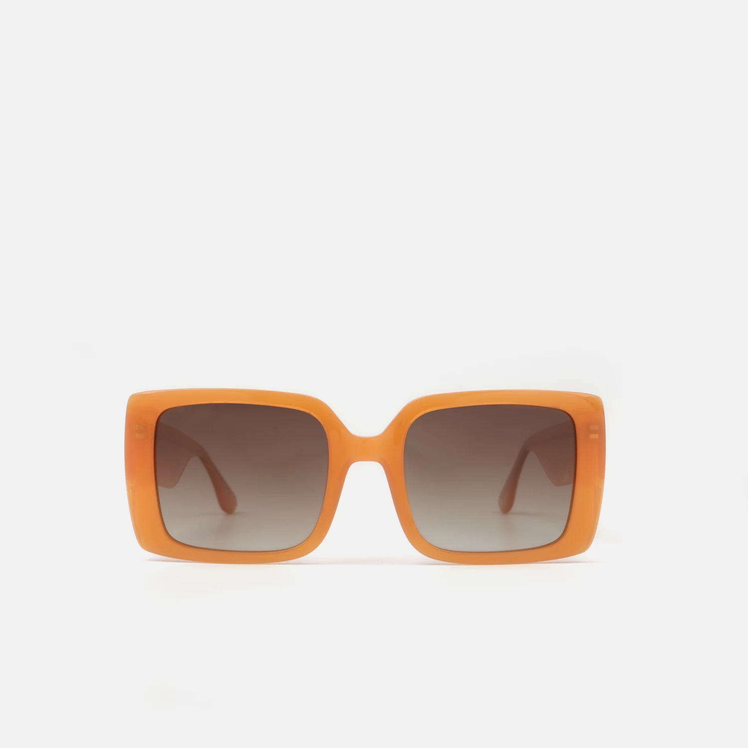 Gafa de sol de mujer, estilo retro oversize, en acetato de color naranja, lente polarizada degrada de color marrón, para un estilo colorido y único. y único.