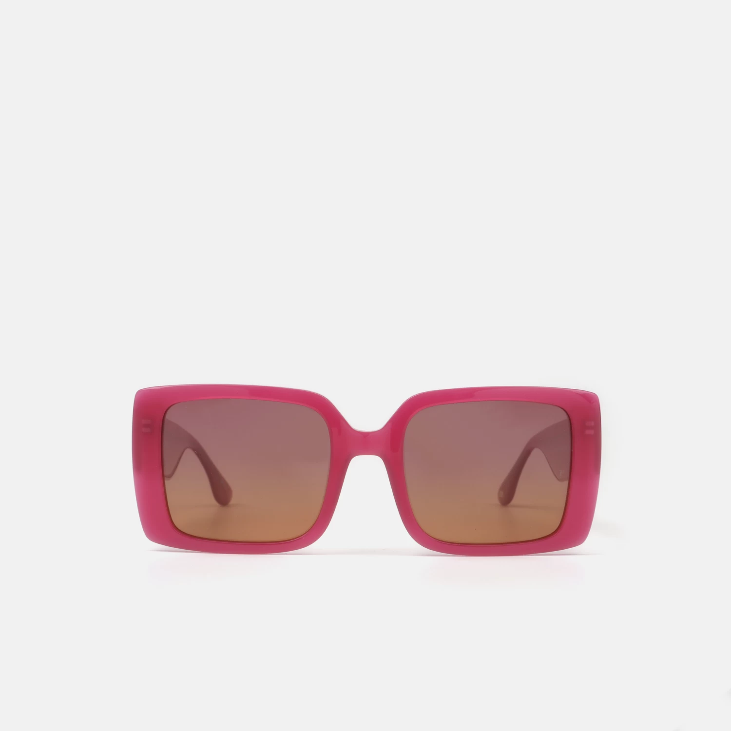 Gafa de sol de mujer, estilo retro oversize, en acetato de color rosa, lente polarizada degrada de color rosa naranja, para un estilo colorido y único. y único.