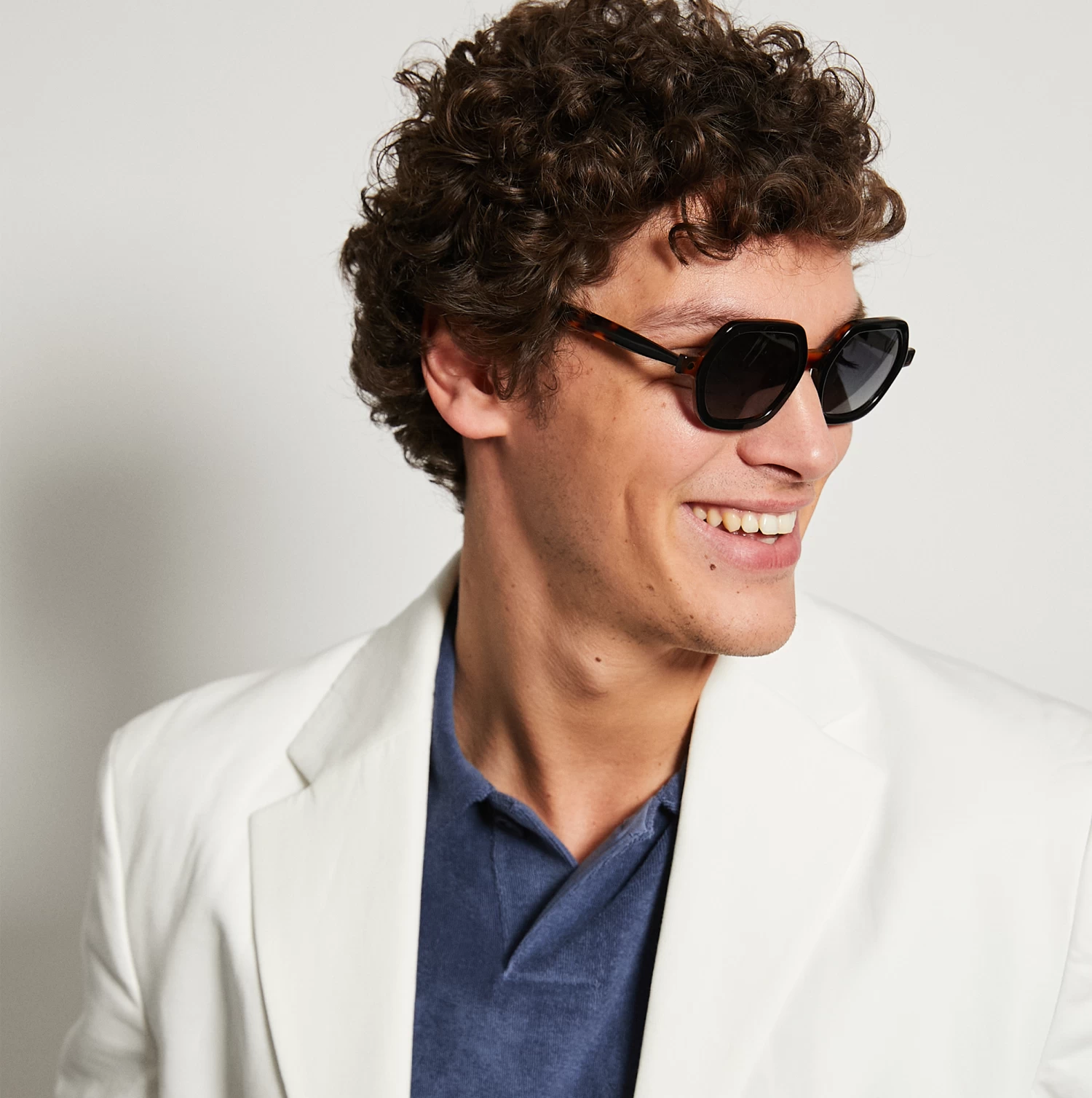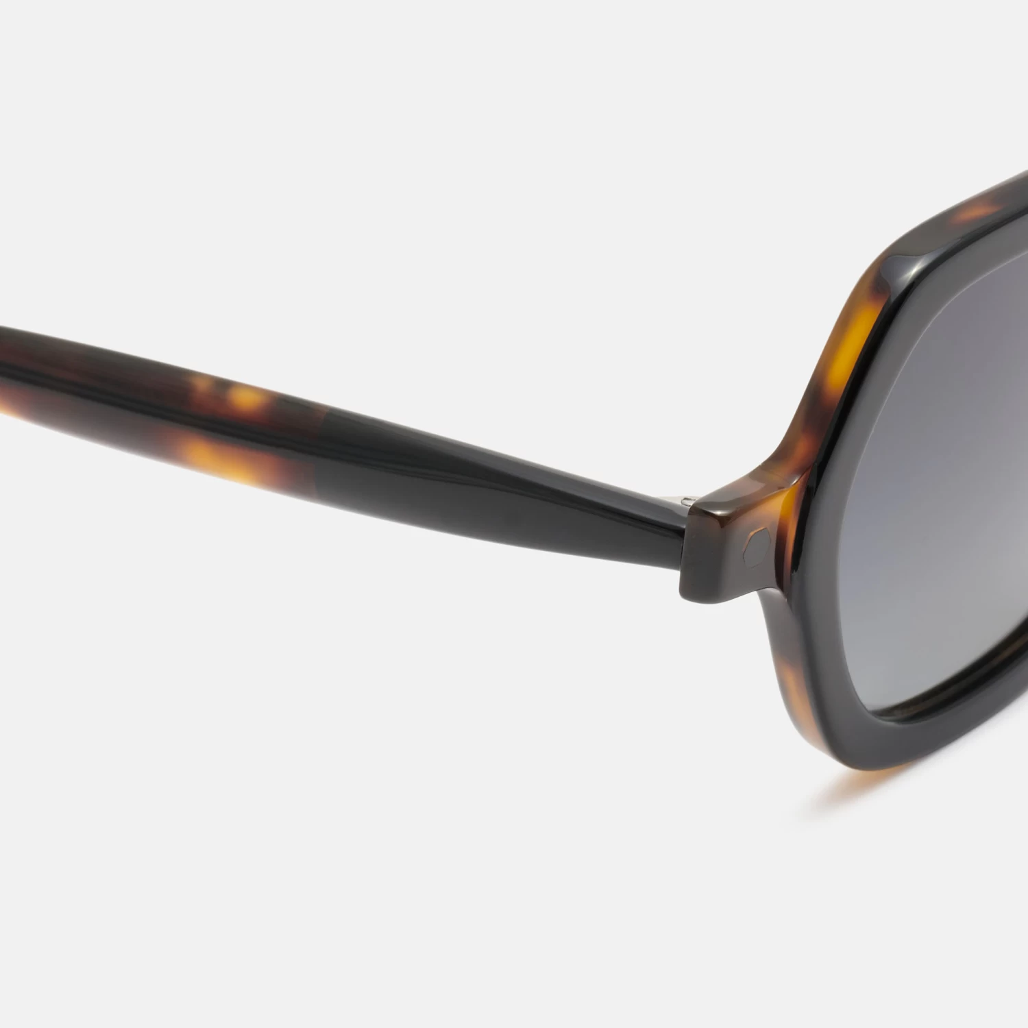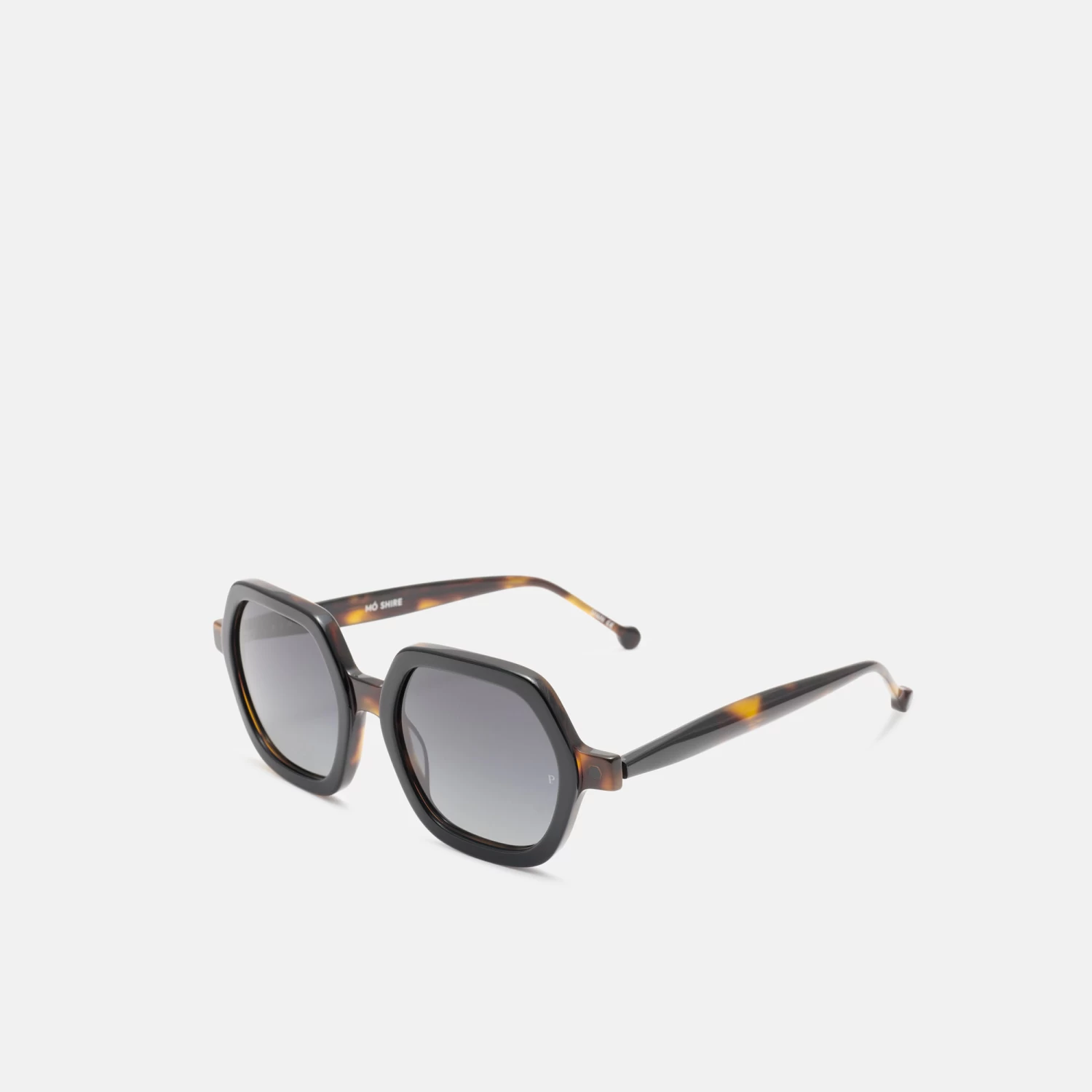 El modelo Mó Shire de la colección BLOCKS inspirada en la geométrica colorida con origen en el grupo artístico Memphis. Destaca por sus combinaciones de colores negro y carey, su forma geométrica y varilla bicolor con diseño semi circular. Sus lentes grises degradadas de alta calidad, son polarizadas para una mayor protección y confort. Estas gafas son un complemento original y atrevido para completar cualquier look.