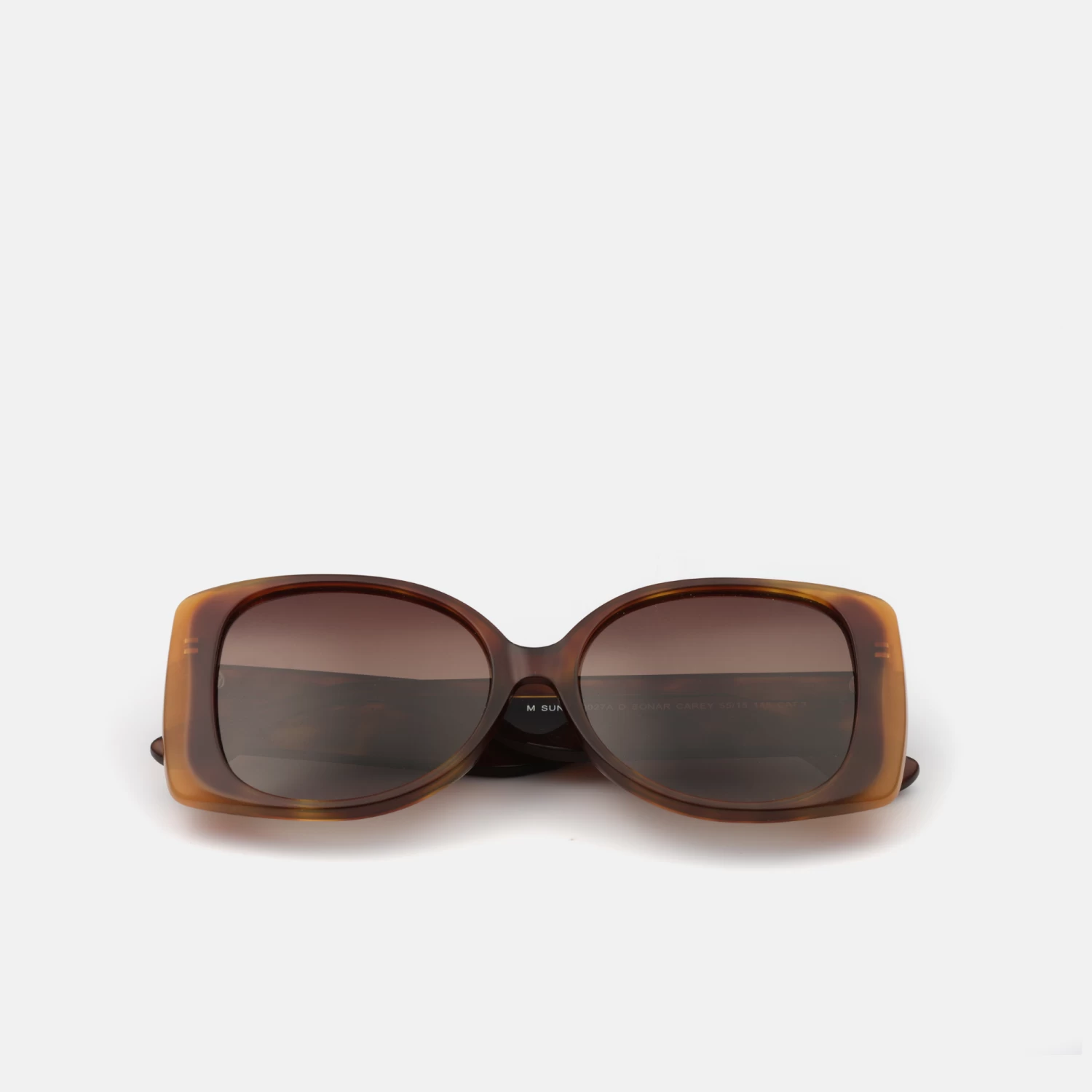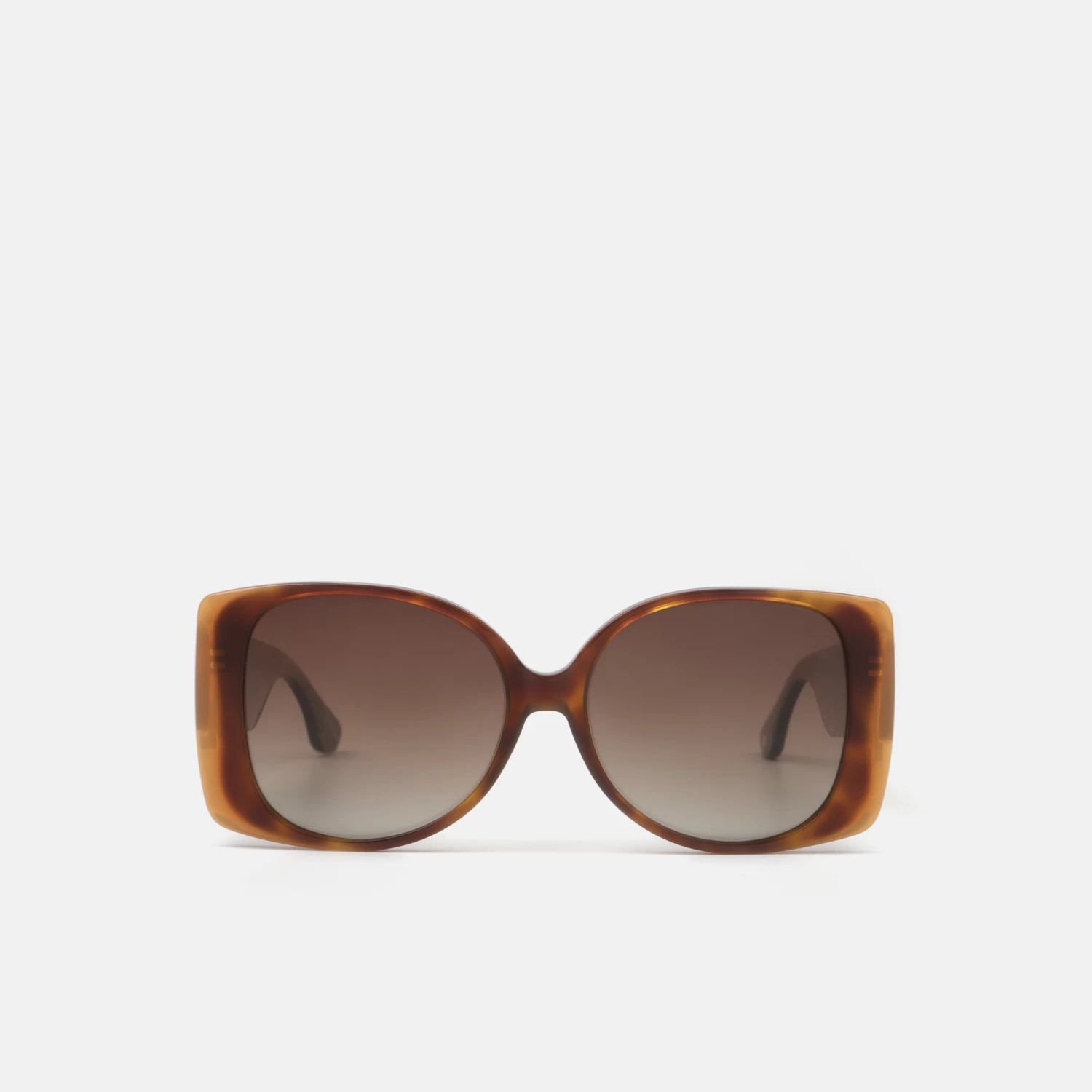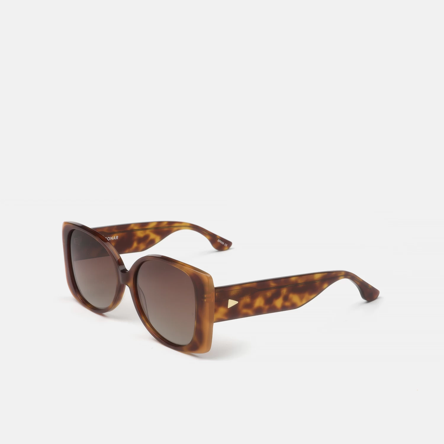 Gafa de sol de mujer, estilo retro oversize, en acetato de color carey con detalles de color en naranja. Tiene las lentes polarizadas degradada de color marrón, que proporcionan una visión más nítida y un mejor contraste. Creando un estilo colorido único.