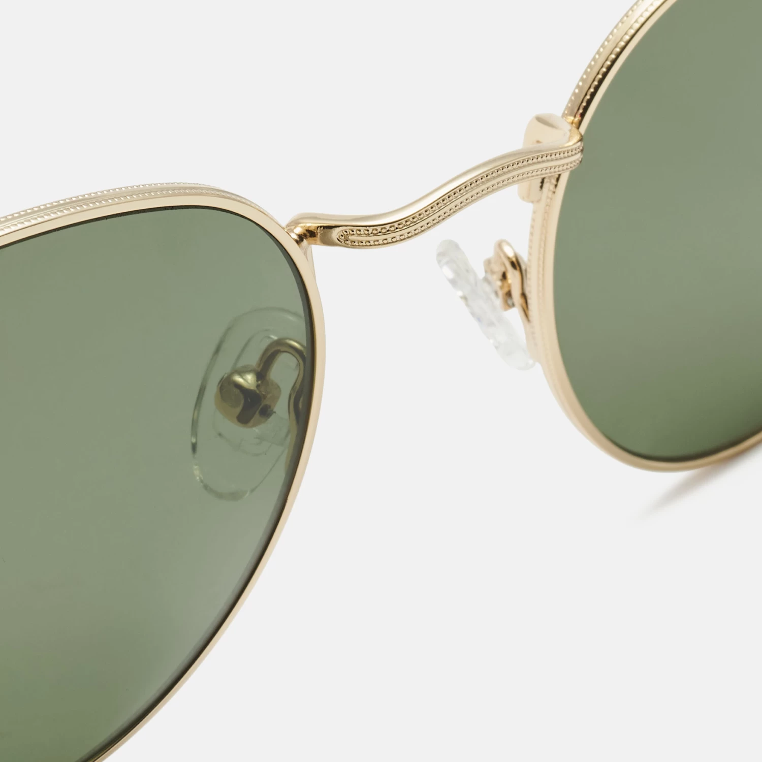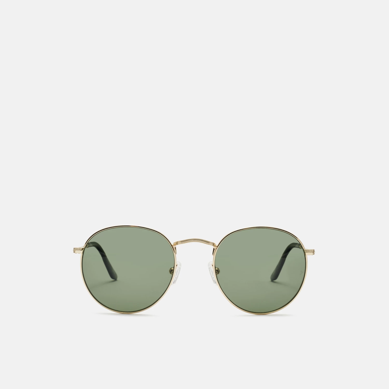 Gafas de sol unisex, con forma redonda, de metal dorado. Sus lentes verdes son polarizadas de alta calidad, para una mejor protección y confort.