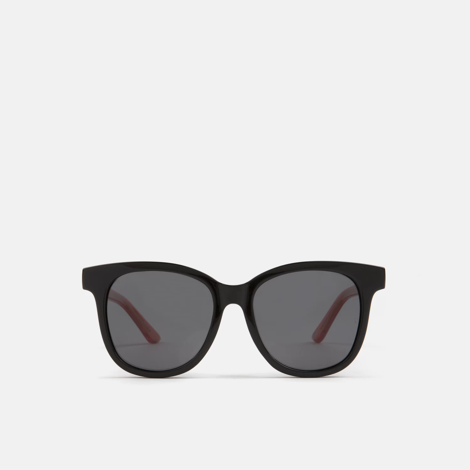 Gafas de sol para niños, con silueta cuadrada, de pasta color negro en el frente y naranja en las varillas. Su lente es polarizada.