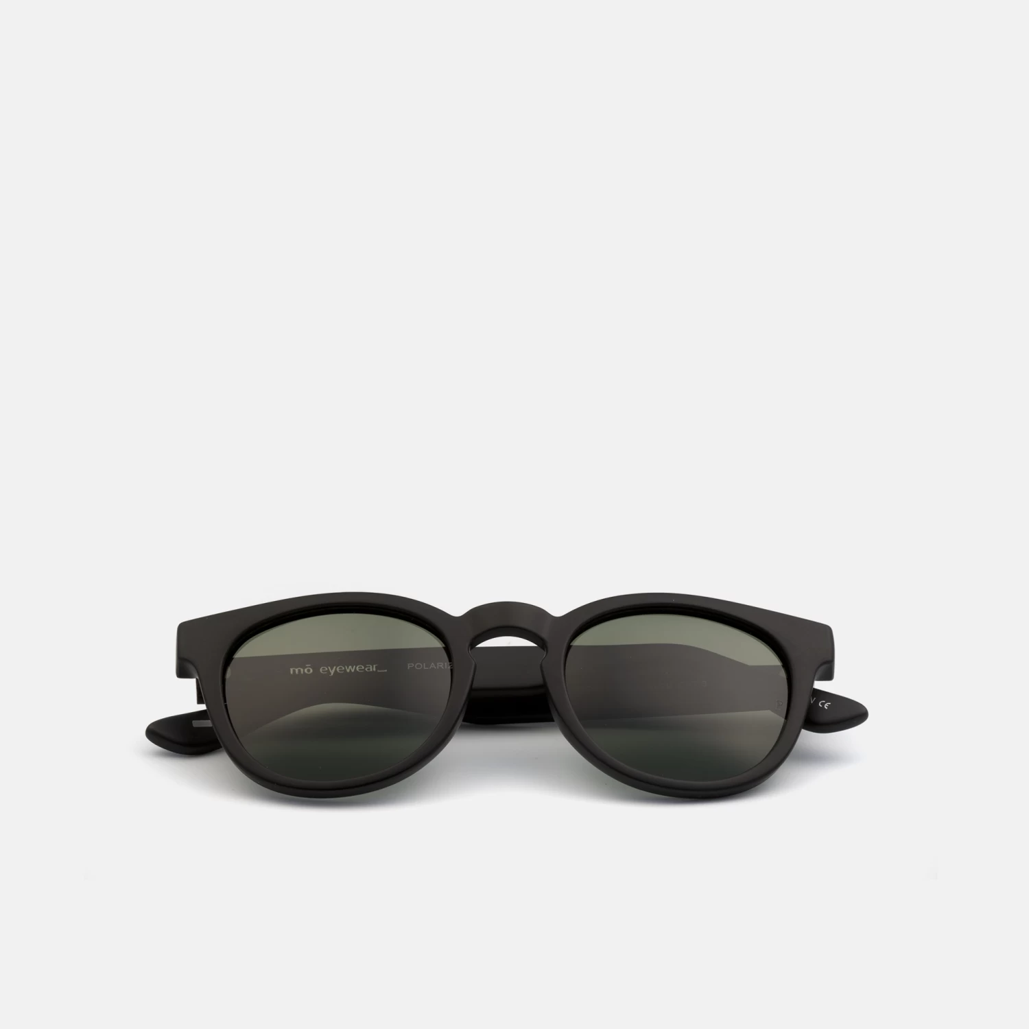 Gafas de sol para niños, con silueta redonda, de pasta color negro y lente polarizada.