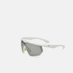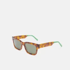 Gafas de sol para niños, con silueta cuadrada, de pasta verde flúor y lente gris polarizada.