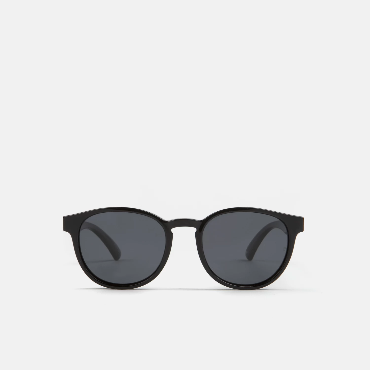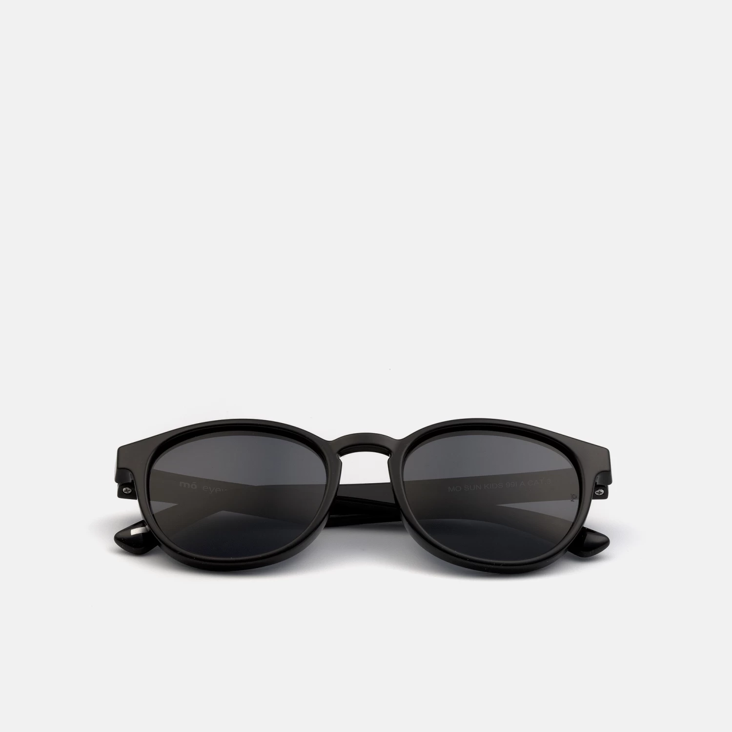 Gafas de sol para niños, con forma redonda y puente en herradura, de caucho negro. Su lente es polarizada.