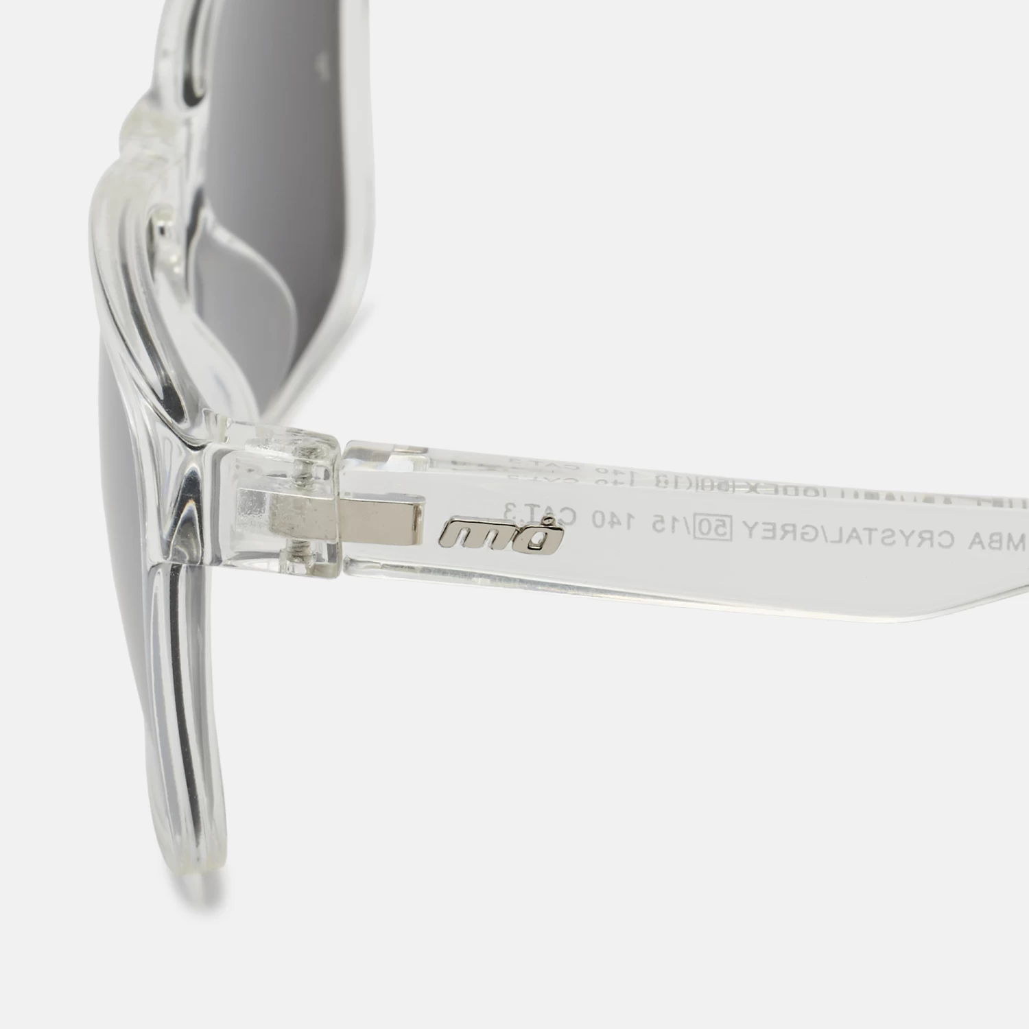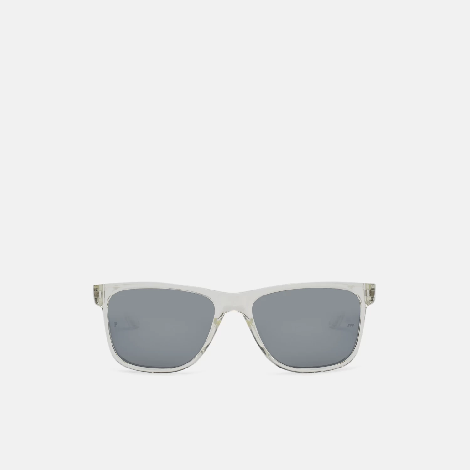 Gafas de sol con forma cuadrada, de material ECO G850 transparente que ofrece una gran resistencia y ligereza. Además, sus detalles engomados aportan una mayor comodidad y sujeción. Sus lentes grises de alta calidad son polarizadas para una mejor protección, asegurando una experiencia cómoda y segura para tus ojos.
